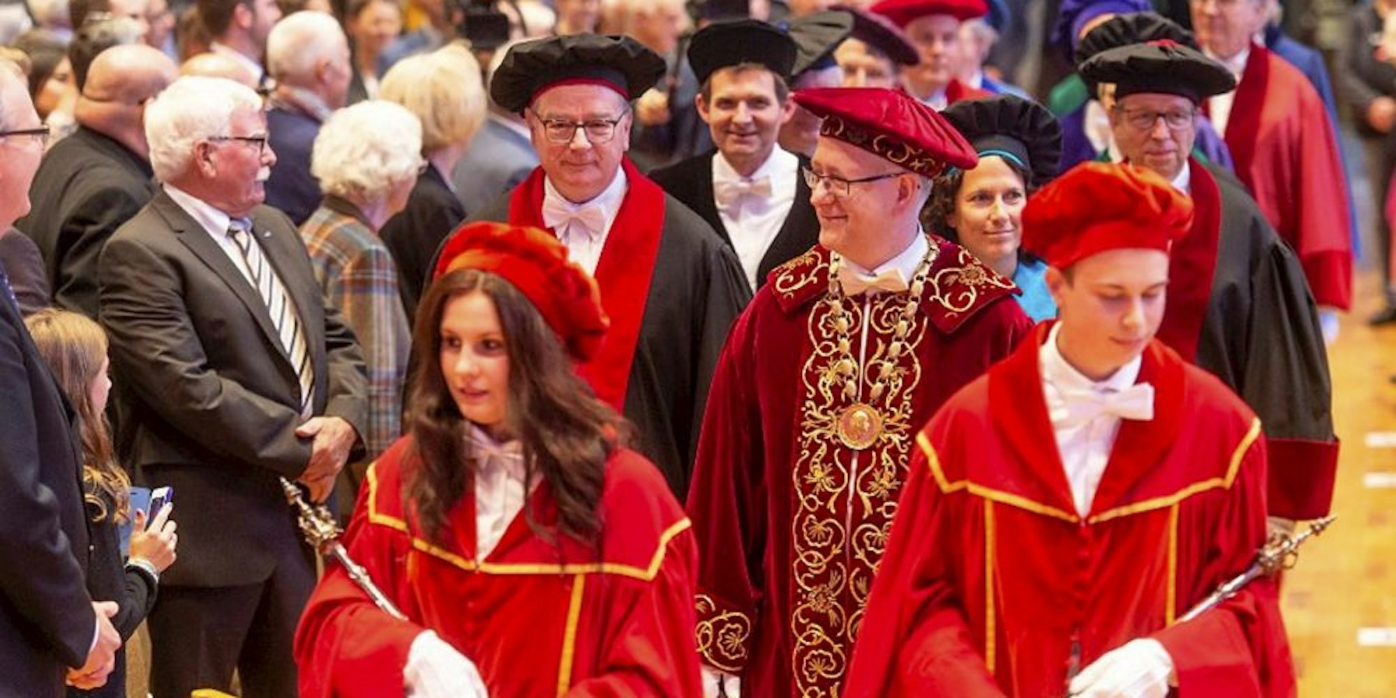Der Rektor der Uni Bonn, Michael Hoch (2.v.r.), bei der Eröffnung des akademischen Jahrs.