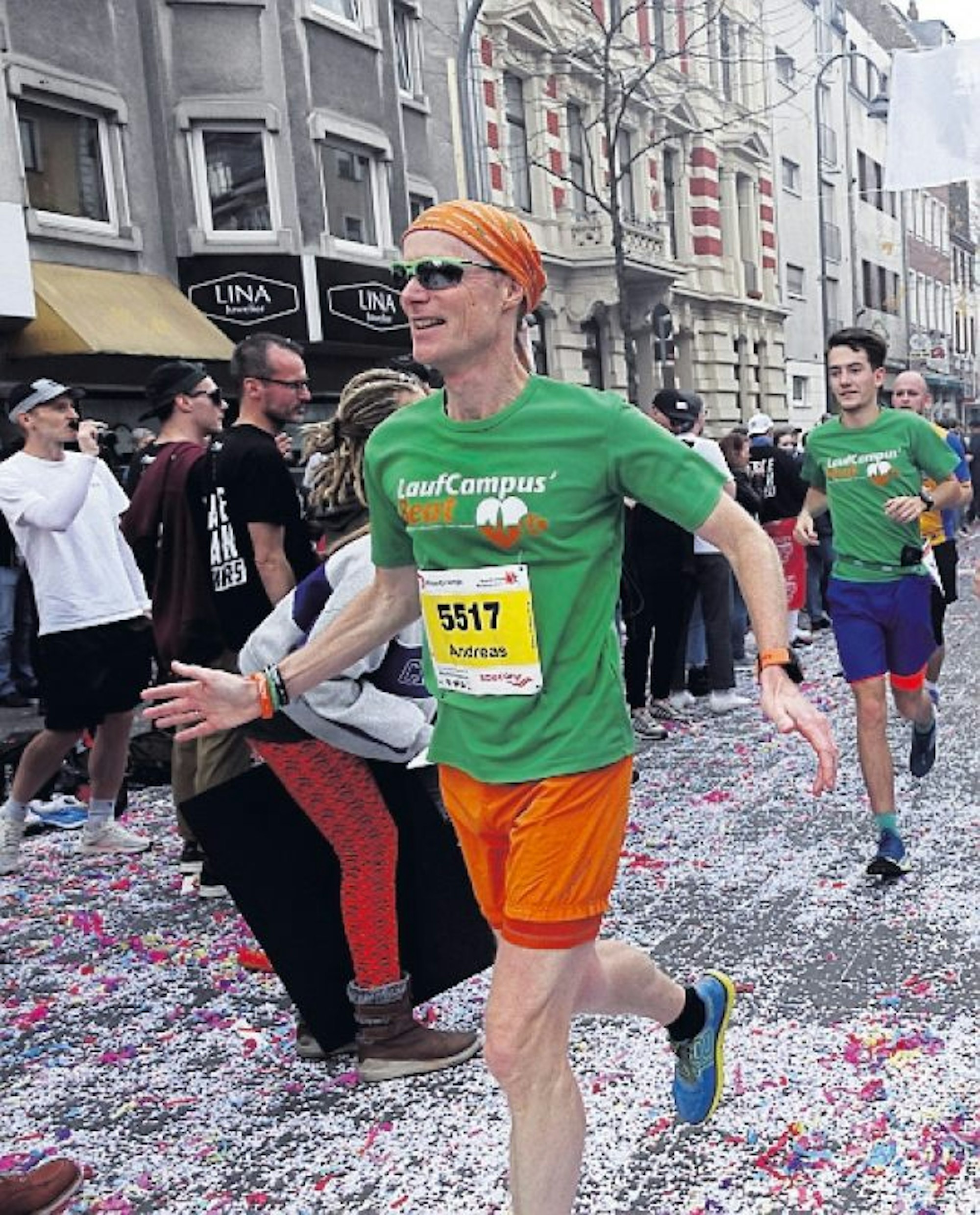 Vor allem an Kilometer 26 erinnerte sich Schmidt später besonders gut. „Es war eine tolle Stimmung auf der Venloer Straße.“ Mit stimmungsvoller Musik und viel Konfetti wurden dort alle Teilnehmer gefeiert – vom ersten bis zum letzten Läufer. „Ich habe selbst zu Hause noch Konfetti gefunden“, erzählt Schmidt lachend.