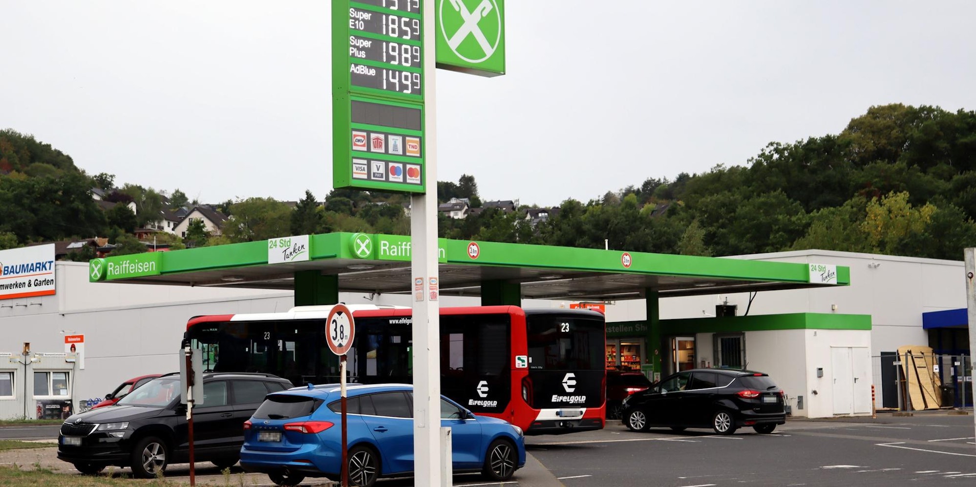 Der Kreis hatte bereits die Erweiterung des benachbarten Baumarktes genehmigt. Dieser soll eine Büroebene erhalten. Direkt angrenzend soll ein Gebäude errichtet werden, das sowohl eine Poststelle als auch den Tankstellenshop mit 73 Quadratmetern Verkaufsfläche und 15 Quadratmetern Regalfläche beinhaltet. Dieses Gebäude wird den bisherigen Shop ersetzen.