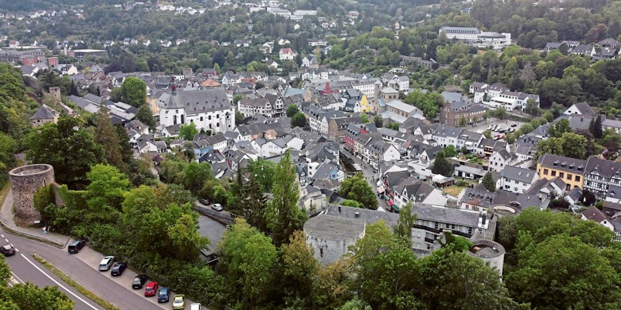 In viel Grün eingebettet ist die Stadt Bad Münstereifel mit historischem Ortskern und Stadtmauern.