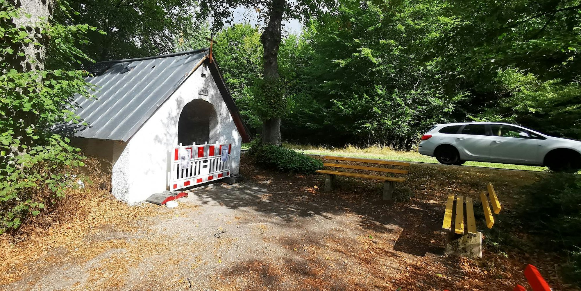 Bad Münstereifel-Scheuerheck – Das Ordnungsamt der Stadt Bad Münstereifel hat aktuell die Waldkapelle Decke Tönnes neben der Landesstraße 234 zwischen Rodert und Scheuerheck mit einer Baustellenabsperrung unzugänglich gemacht. Als Erklärung wurde an der Absperrung ein Zettel des Ordnungsamtes angebracht, der erklärt, dass wegen der erhöhten Waldbrandgefahr das Aufstellen und Abbrennen von Kerzen strengstens untersagt sei.