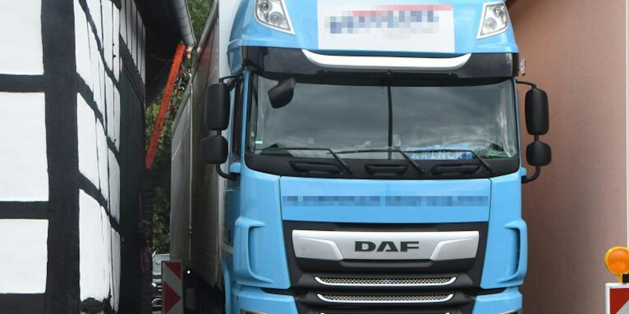 Also begeben sich die Lastwagenfahrer ins Labyrinth, oft angeleitet durch ihre Navigationsgeräte – und ebenso oft ist die Fahrt vergeblich. Auch die engen Straßen von Houverath sind vom Schwerlastverkehr betroffen. Eigentlich müssen die Lkw sogar draußen bleiben. Die Orte sind für diese großen Fahrzeuge nicht ausgelegt, manche Dachrinne wurde schon abgerissen.