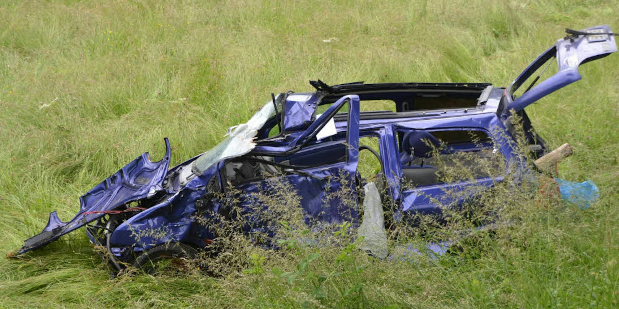 Aus bislang ungeklärter Ursache geriet das Fahrzeug in einer leichten Rechtskurve auf den rechten Grünstreifen und kollidierte dort mit einem Baum. Durch die Wucht des Aufpralls wurde der Wagen um die eigene Achse und schließlich in den Straßengraben geschleudert. Meterweit flogen Trümmerteile über die Straße und darüber hinaus.