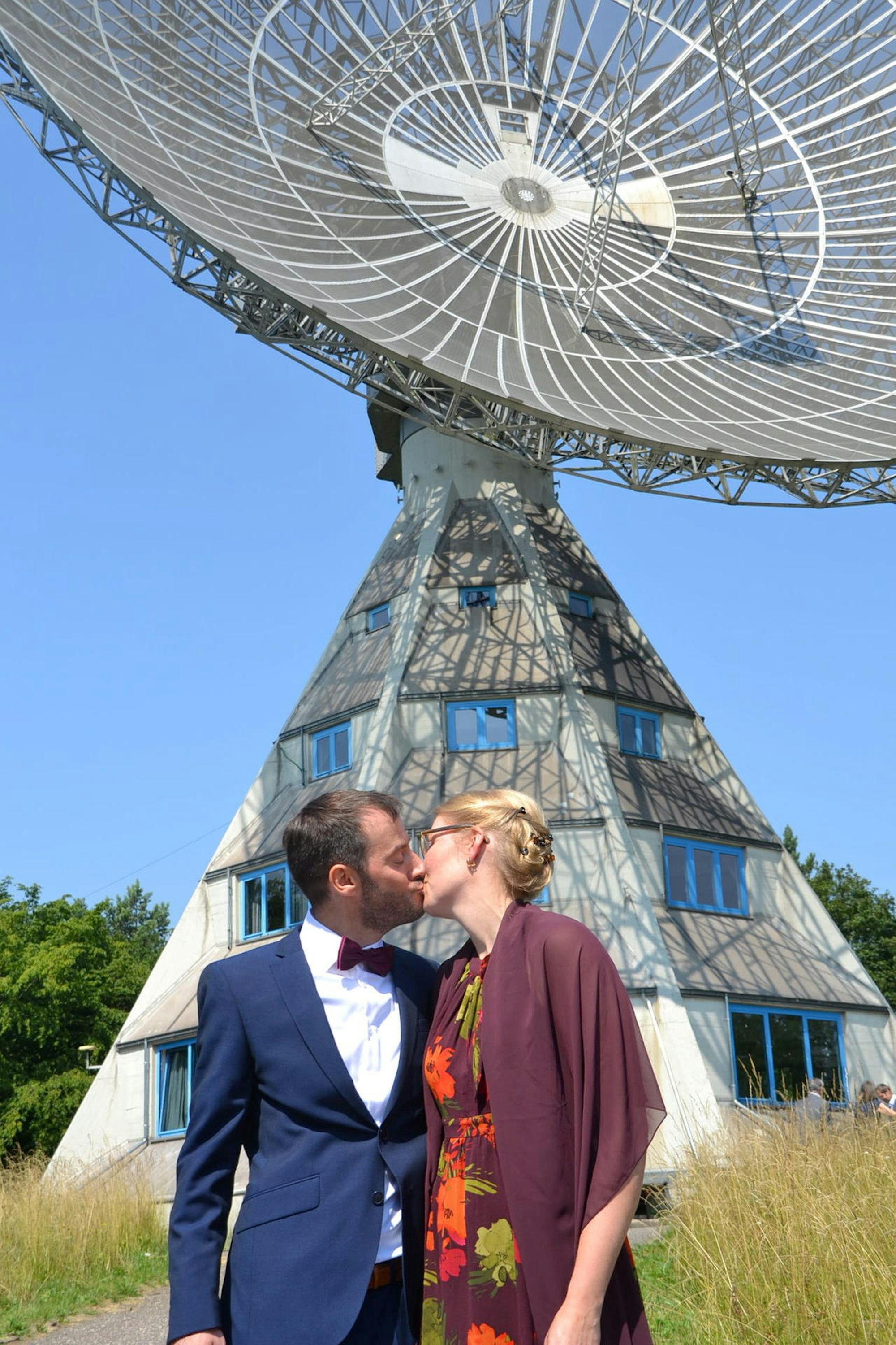Doch es kam anders: Nachdem sie sich das Jawort gegeben hatten, sind sie nun das erste Ehepaar, dass diesen bedeutsamen Schritt im Astropeiler Stockert in Eschweiler gegangen ist. Welch’ eine Lokalität für diesen großen Schritt! Ein Stück Wissenschaftsgeschichte und die ganz großen Gefühle Hand in Hand.
