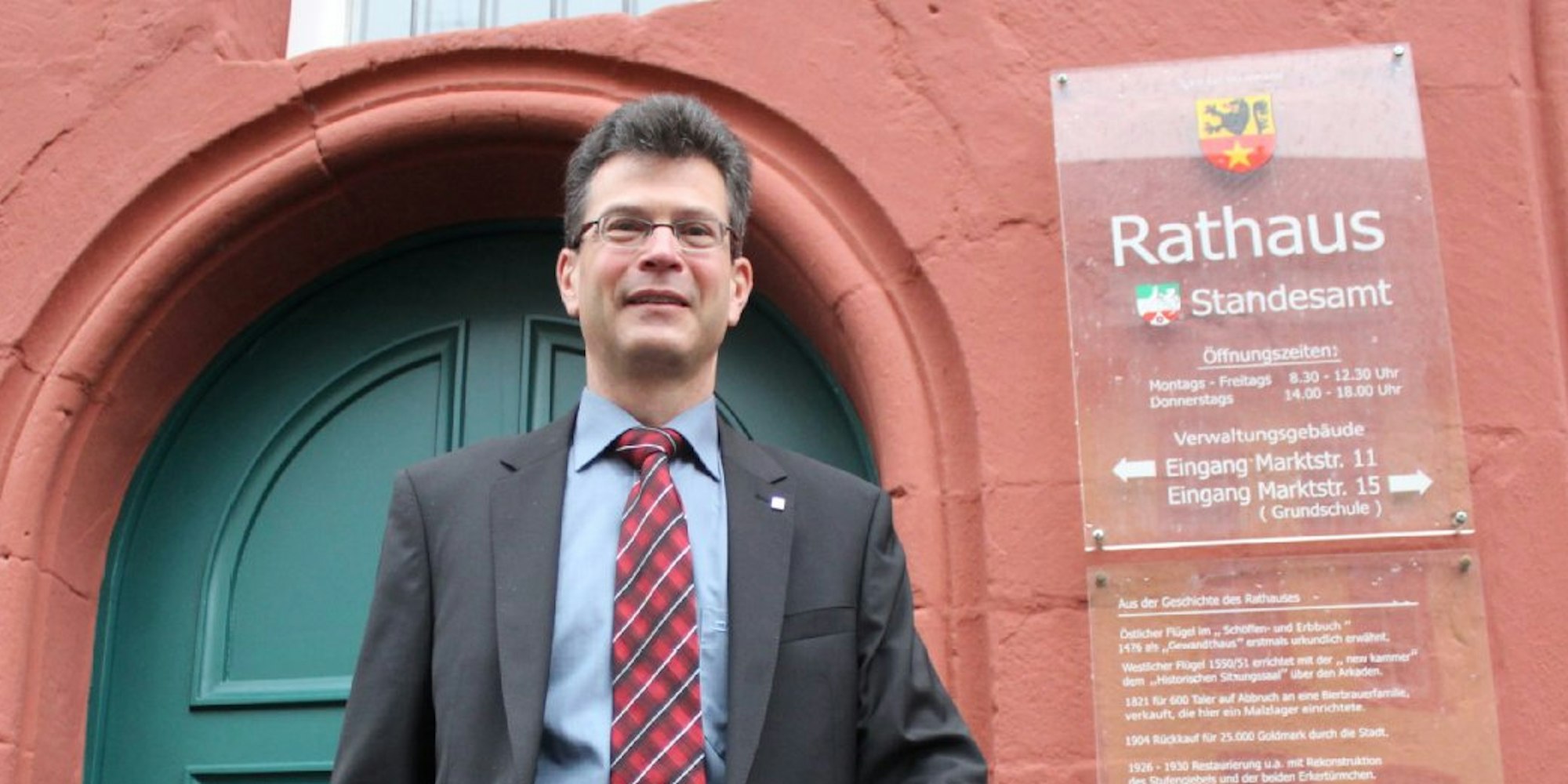 Bürgermeister Alexander Büttner vor dem Rathaus in Bad Münstereifel.