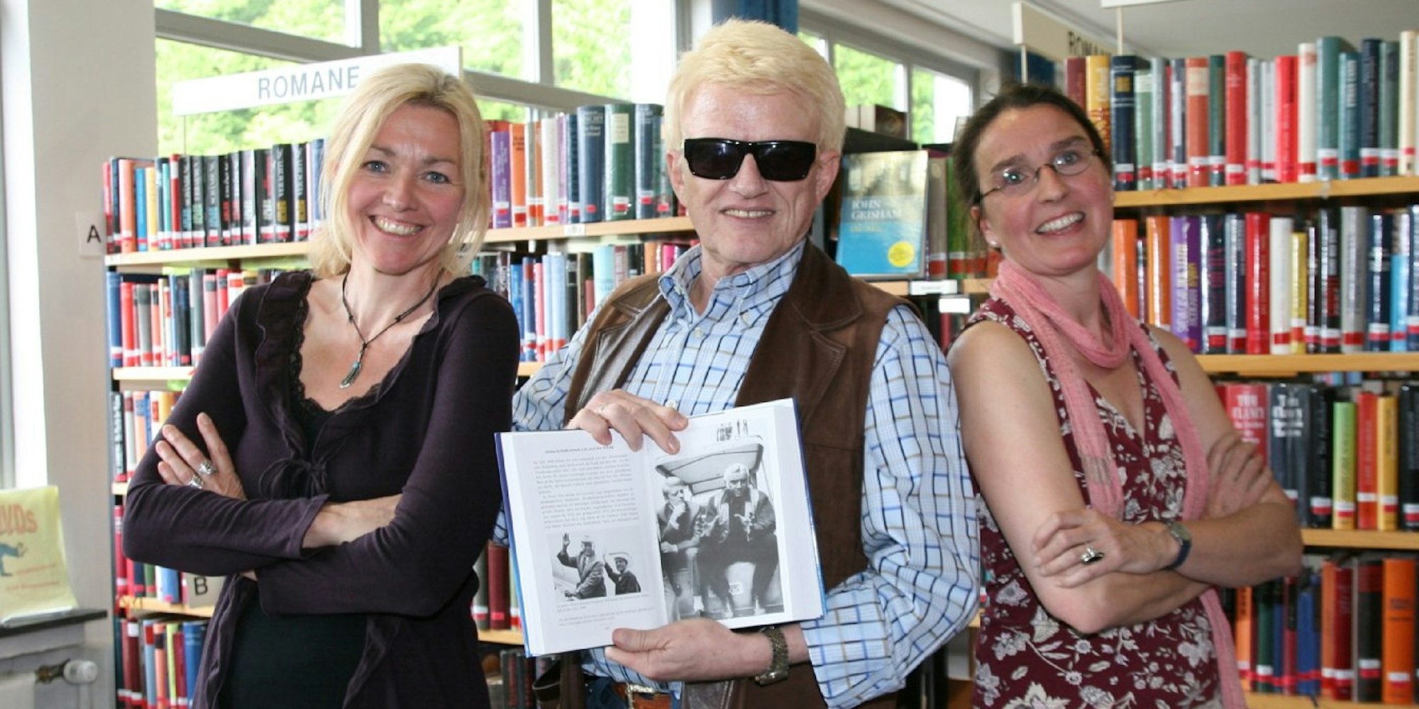 Heino ließ es sich trotz des vollen Terminkalenders nicht nehmen, Dr. Waltraud Stening-Belz (links) und Stephanie Eichhorn seine Buchspende persönlich vorbeizubringen.