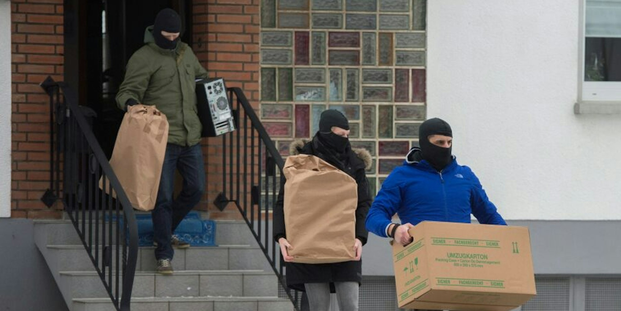 Ein Spezialeinsatzkommando trug kistenweise Material aus dem Haus, in dem die Terror-Bürger gelebt haben.