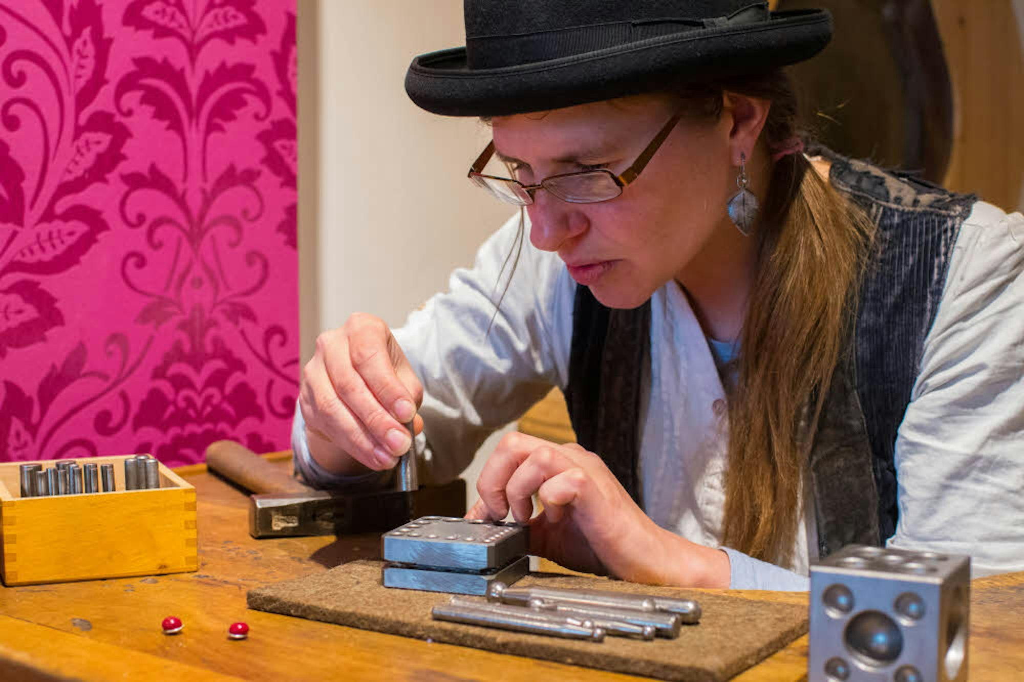 Linda Müller aus Schleswig bei Flensburg hat ihn gewagt. Die 33-Jährige ist Goldschmiedin auf der Walz. Momentan arbeitet sie zwei Tage in der Woche in der Werkstatt von Goldschmiedemeisterin Ursula Palm-Zumbé gegenüber vom roten Rathaus in Bad Münstereifel.