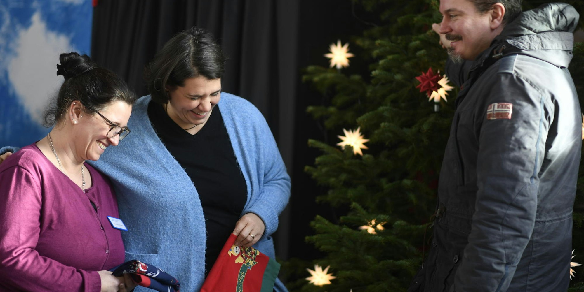 Sie helfen sich gegenseitig: Katharina Kann (l.) hat Judith Weichsel über das gemeinsame Projekt der Weihnachtsbörse zufällig Tischdecken geschenkt. Alex Ponickau hat Weichsel auf die Idee dazu gebracht und selbst Weihnachtsschmuck erhalten.
