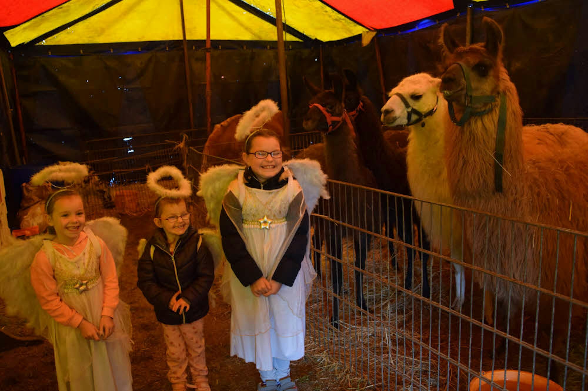 Die Engelchen Joana, Samantha und Loren kümmern sich liebevoll um die Lamas des Familienzirkus.