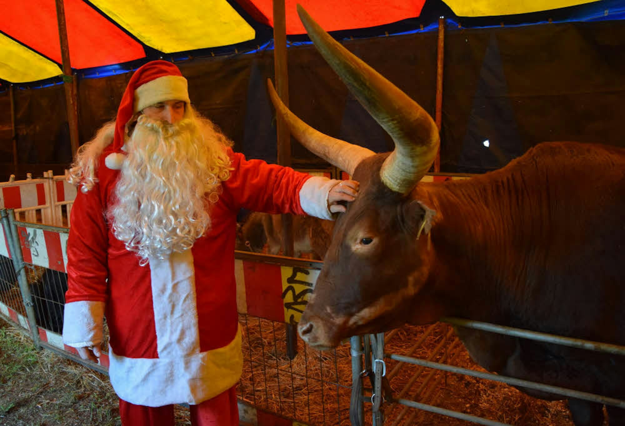 Streicheleinheiten fürs Watussirind gibt’s von Weihnachtsmann Markus Knoch persönlich.