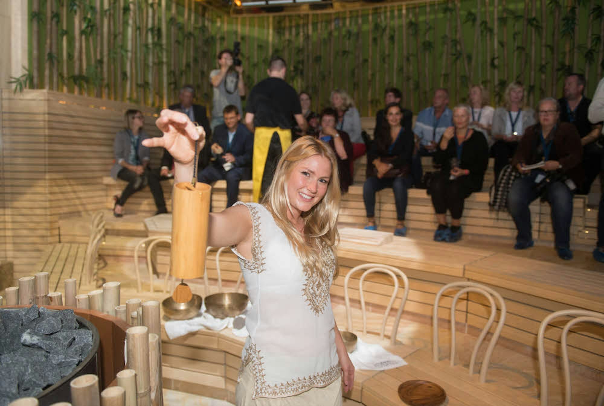 Zeremonienmeisterin Sarah Berger ist in der neuen Meditationssauna der Thermen- und Badewelt für die Aufgüsse zuständig.