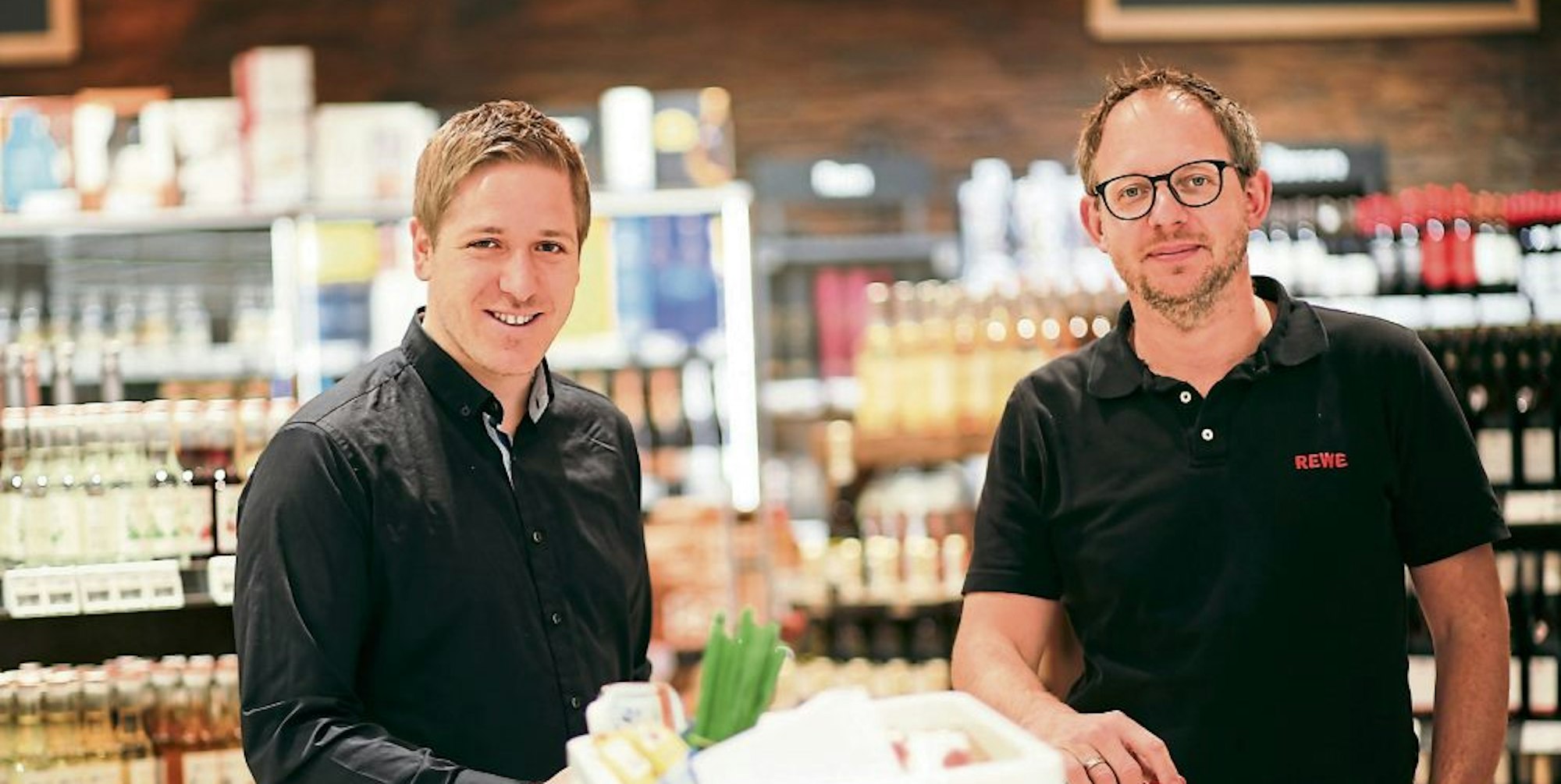 Bargeldloses Bezahlen per Monatsrechnung räumt Alexander Bell vom Rewe-Markt in Blankenheim (r.) dem Freilinger Einkaufsservice um Initiator Markus Ramers ein.