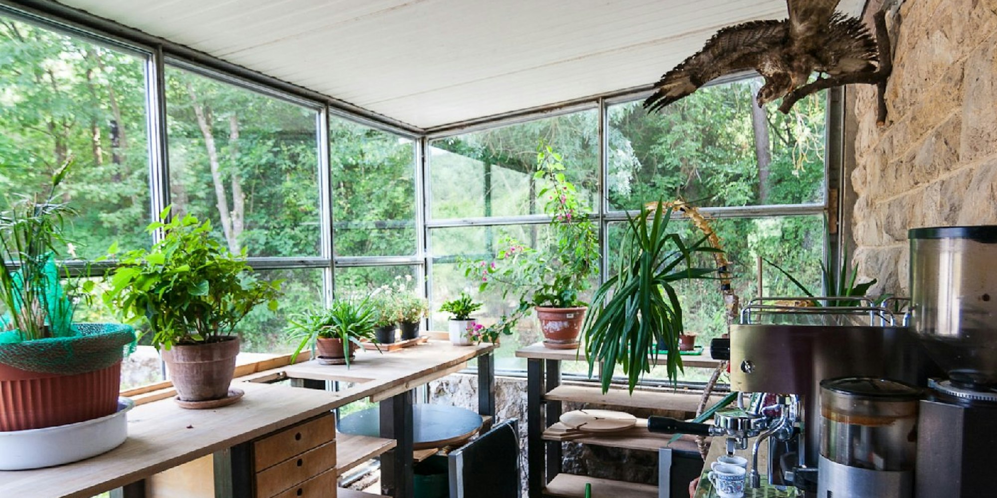In diesem lichtdurchfluteten Anbau wähnt sich der Besucher inmitten der das Haus umgebenden Natur.