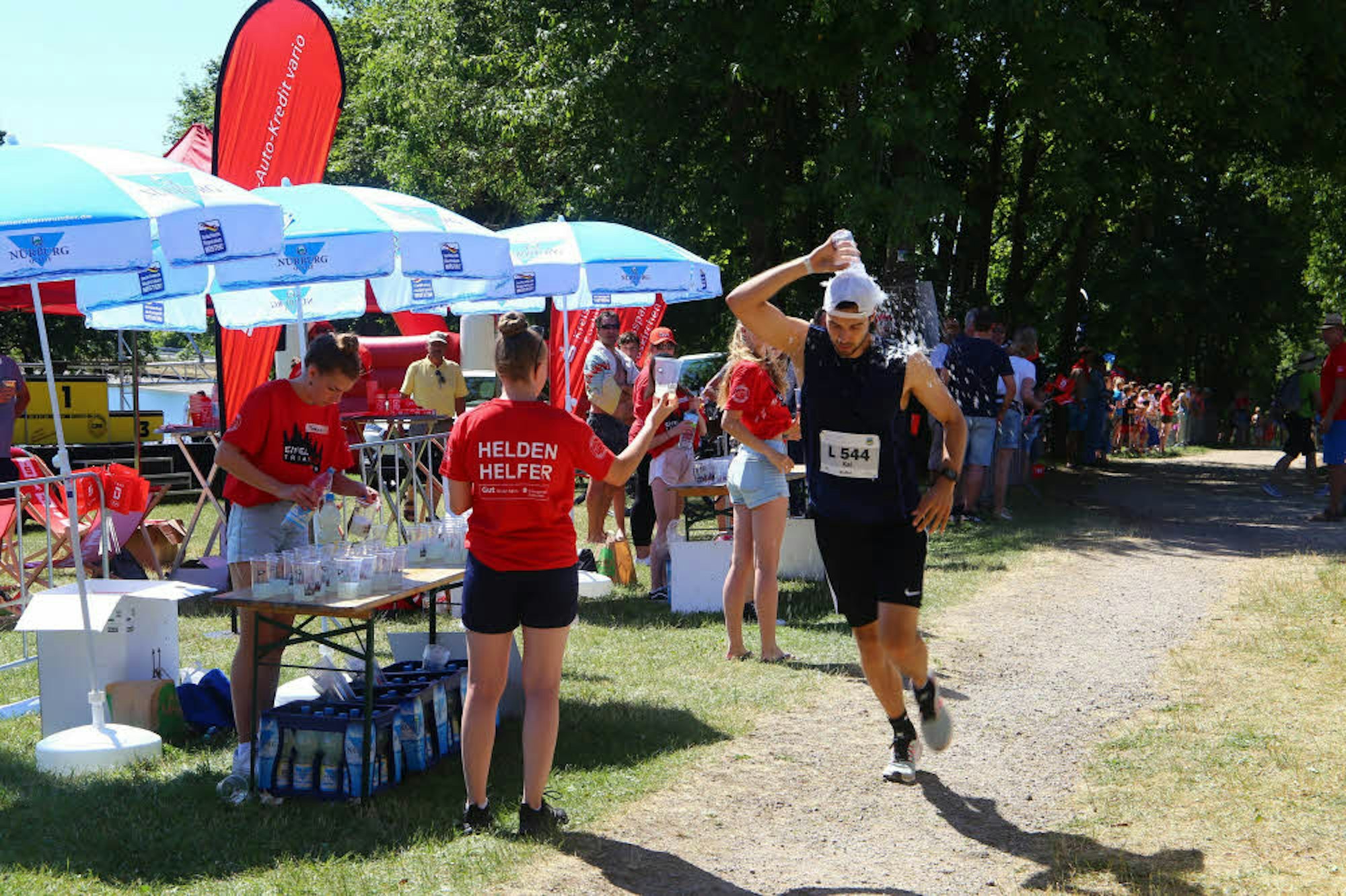 Abkühlung in Form von Wasser, von den Helden-Helfern gereicht, war bei den hohen Temperaturen wichtig.