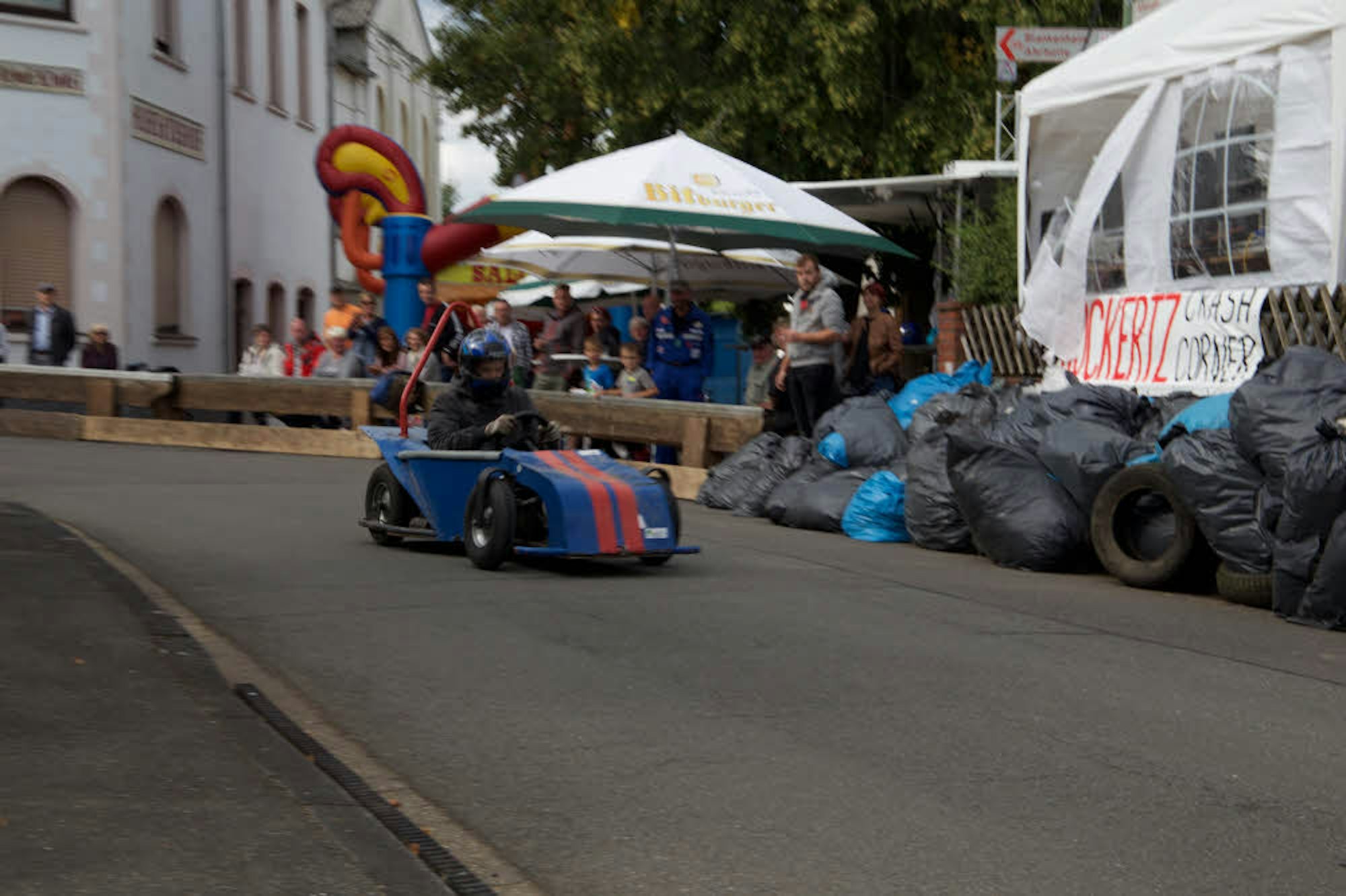Unterschätzt werden sollte die ganze Angelegenheit nicht. Auch wenn die Geschwindigkeiten auf der rund 650 Meter langen Strecke durch zwei Schikanen vermindert werden, zeigt die Geschwindigkeitsmessung bei den schnellsten Piloten Werte von über 50 Stundenkilometern an. Vor der letzten Kurve im Dorf seien bei Ruland einmal 78 Stundenkilometer gemessen worden, berichten Beobachter. Doch manche lassen es auch gemächlicher angehen. Denn es kommt ja auf den Spaß an.