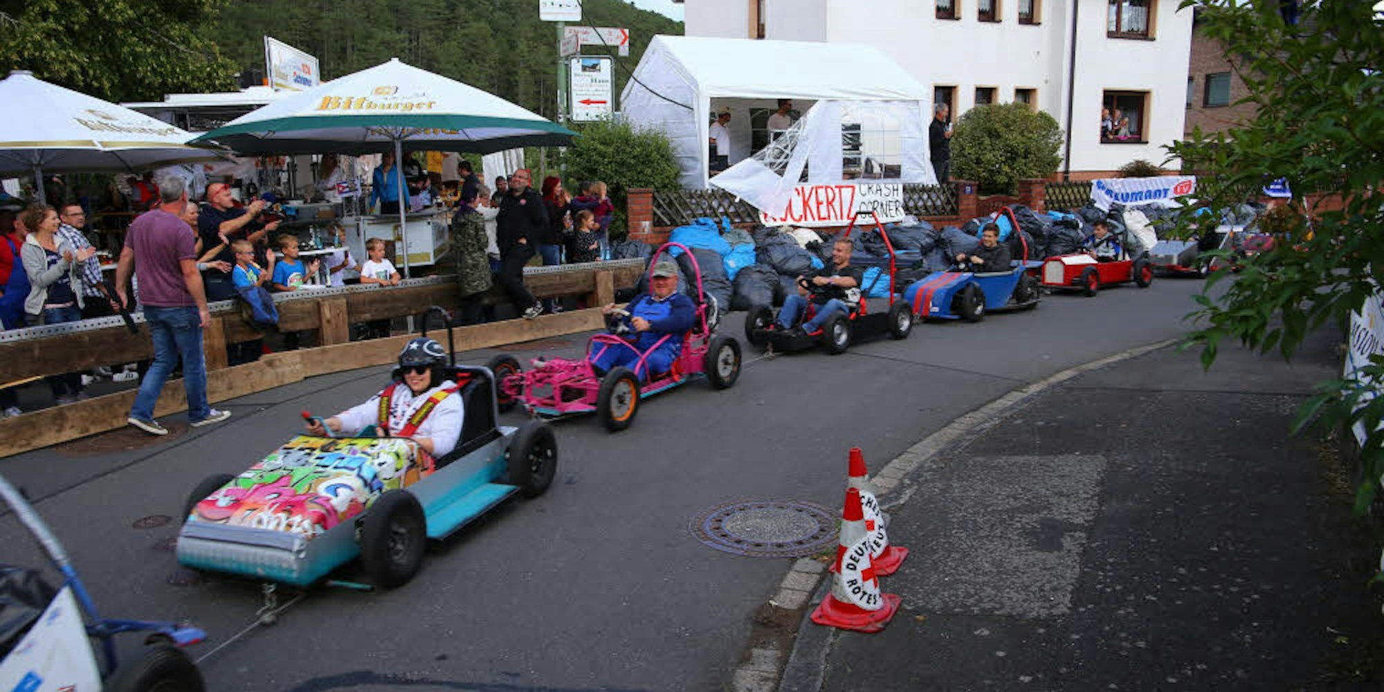 Mit mehr als 50 Stundenkilometern rasten die schnellsten Seifenkisten den Berg hinab durch Ahrdorf.