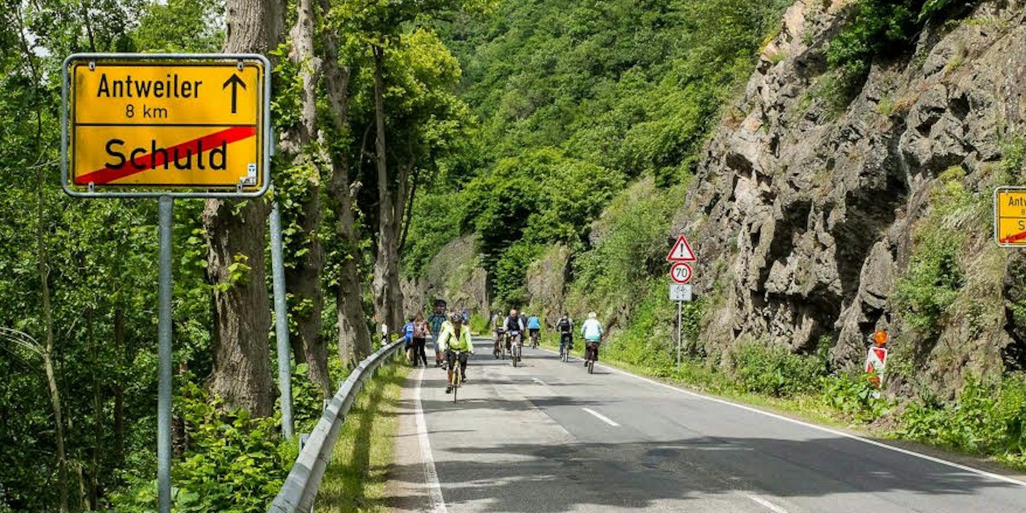 Auch nach zehn Jahren klafft im Ahrtalradweg immer noch eine gefährliche Lücke: Zwischen Schuld und Fuchshofen müssen Radler die enge Landstraße benutzen. Sie ist nur anläßlich der Tour de Ahrtal für Kraftfahzeuge gesperrt.