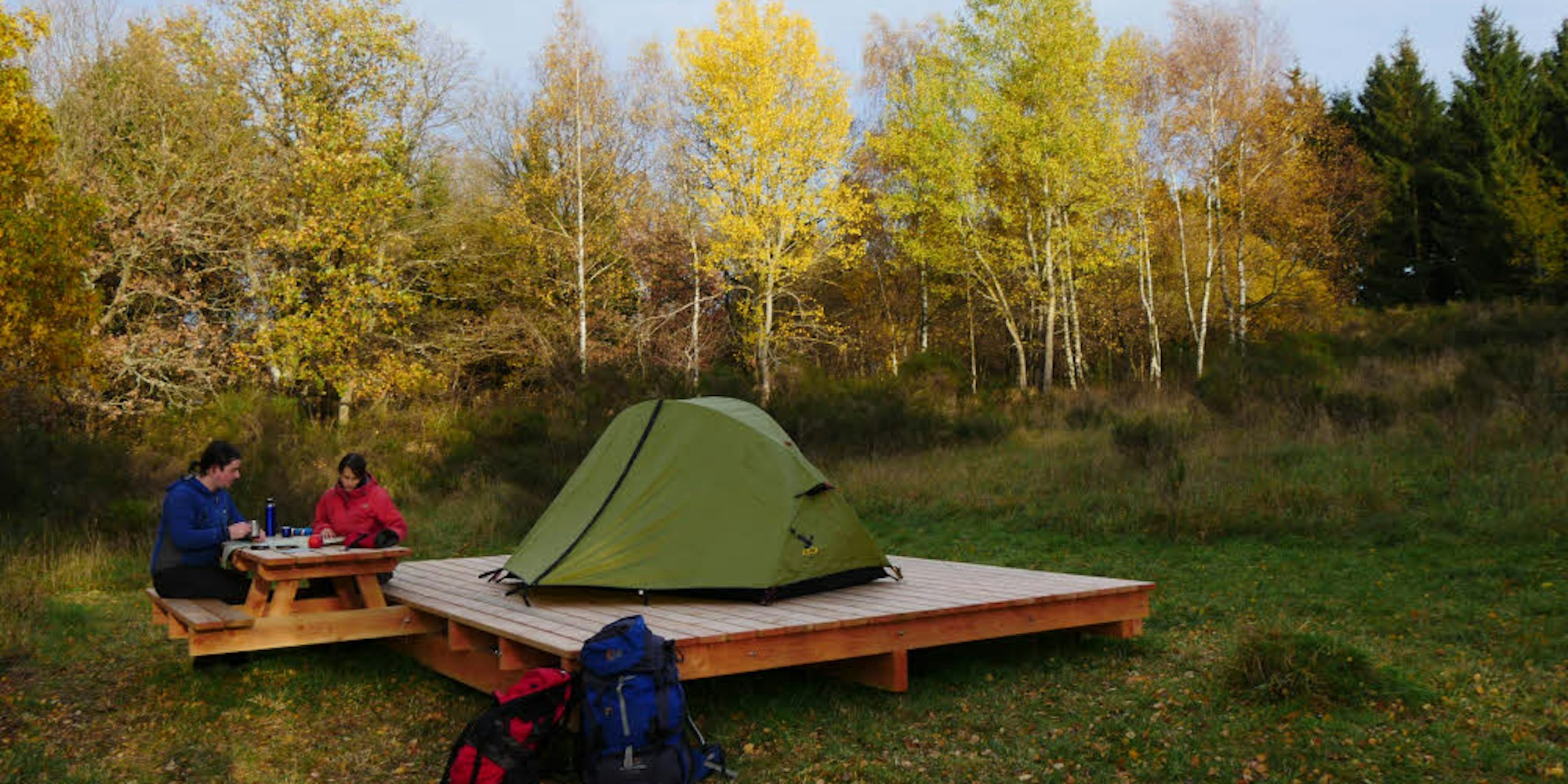 Für diese Klientel gibt es in der Eifel neuerdings Trekkingplätze, bislang sind es vier Stück – drei in Schleiden, einer in Nettersheim. Auf diesen Plätzen können Wanderer mitten in der unberührten Natur für ein oder zwei Nächte ihr Zelt auf einer kleinen Holzplattform aufschlagen, außerdem gibt es dort eine Komposttoilette. Die Plätze werden über die Nordeifel-Tourismus vermarktet, erst nach Buchung wird ihre genaue Lage mitgeteilt.