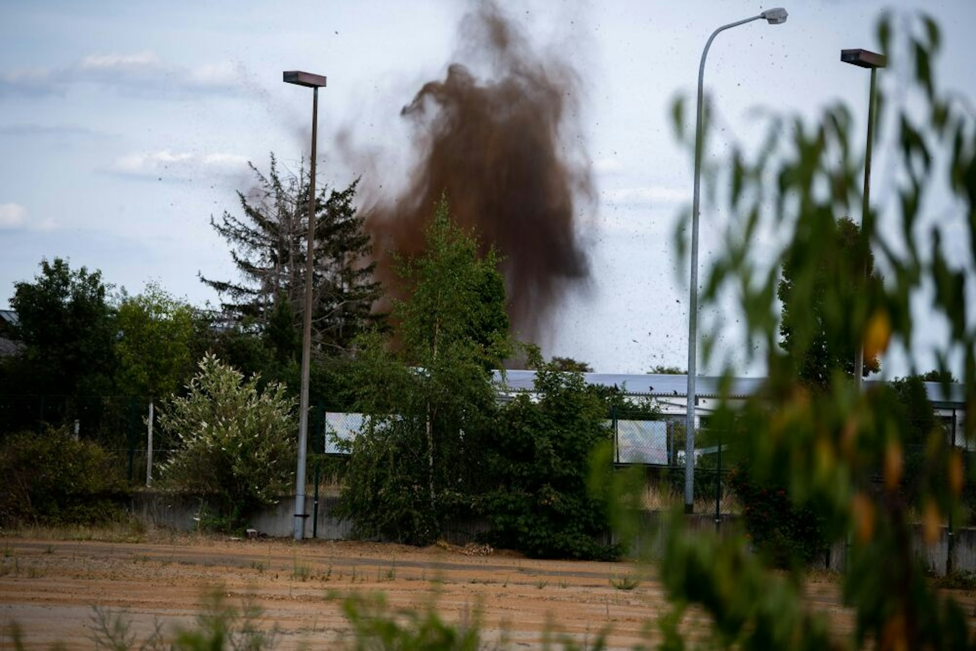 Die Experten sprengten die beiden Blindgänger aus sicherer Entfernung. Das Erdreich spritzte etwa 30 Meter hoch.