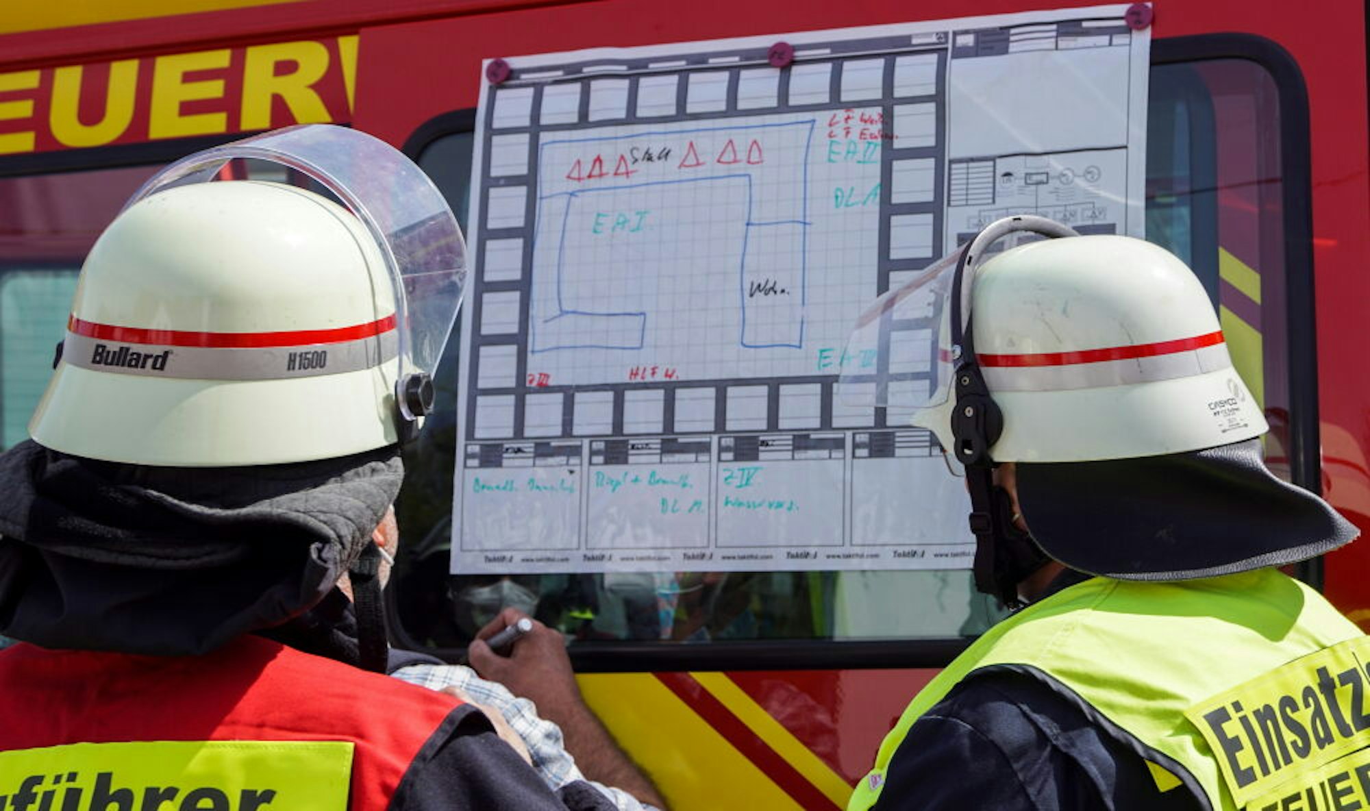 Die Einsatzleitung bildete mehrere Abschnitte. Zwischenzeitlich gab es Probleme mit der Löschwasserversorgung.