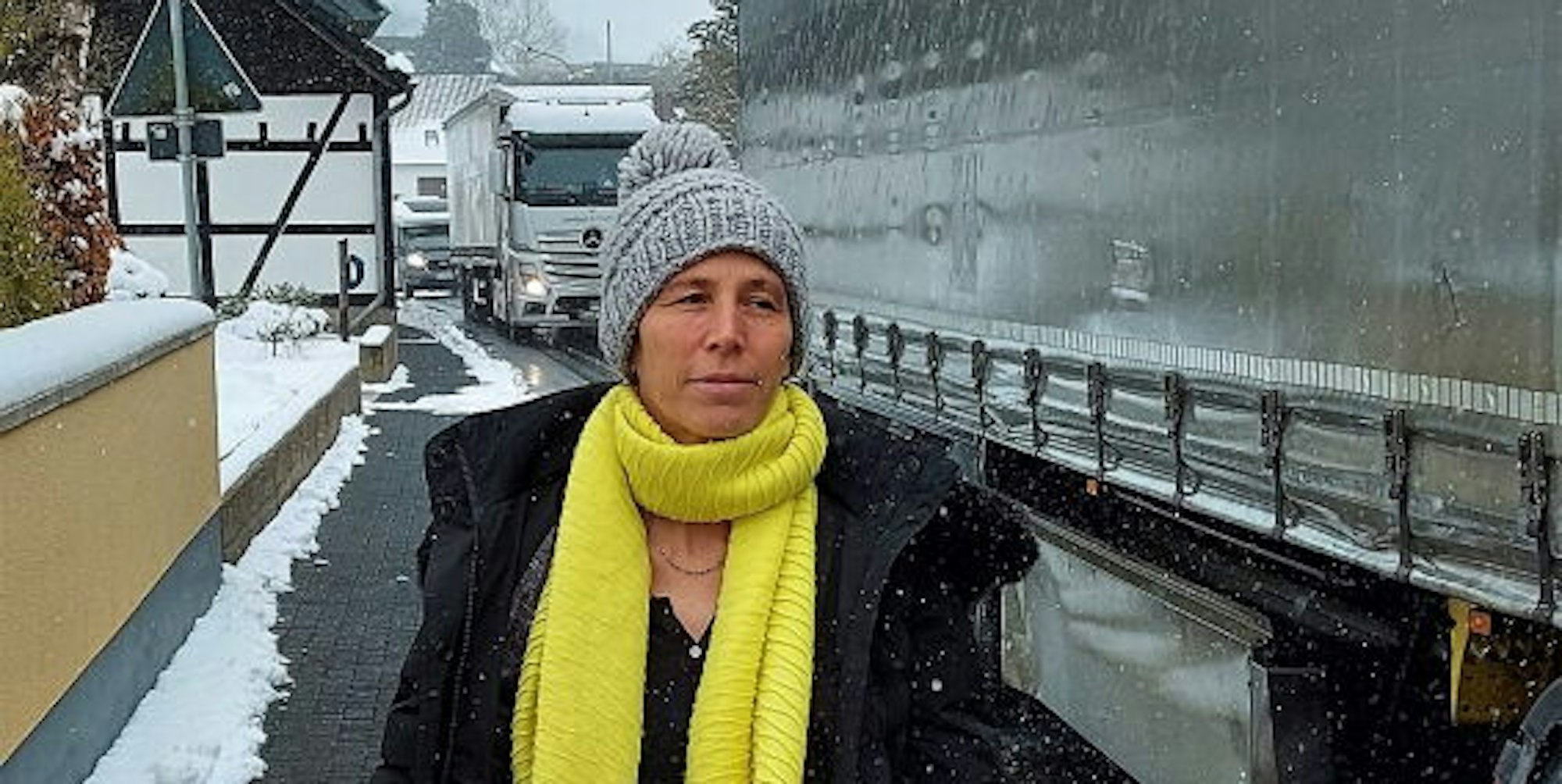 Mehr Lkw-Verkehr als sonst, aber längst nicht so viel wie befürchtet: In Berk ist auch Anwohnerin Marion Freyaldenhoven froh, wenn die ausgeschilderte Umleitung aufgehoben wird.