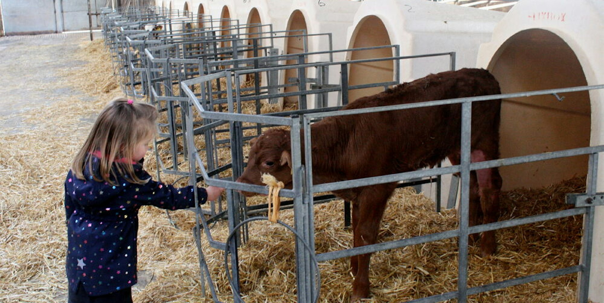 Die Kälbchen findet Tochter Klara van Kann, drei Jahre alt, besonders süß. Sie gehören auf dem Milchvieh-Hof ihrer Eltern natürlich dazu.