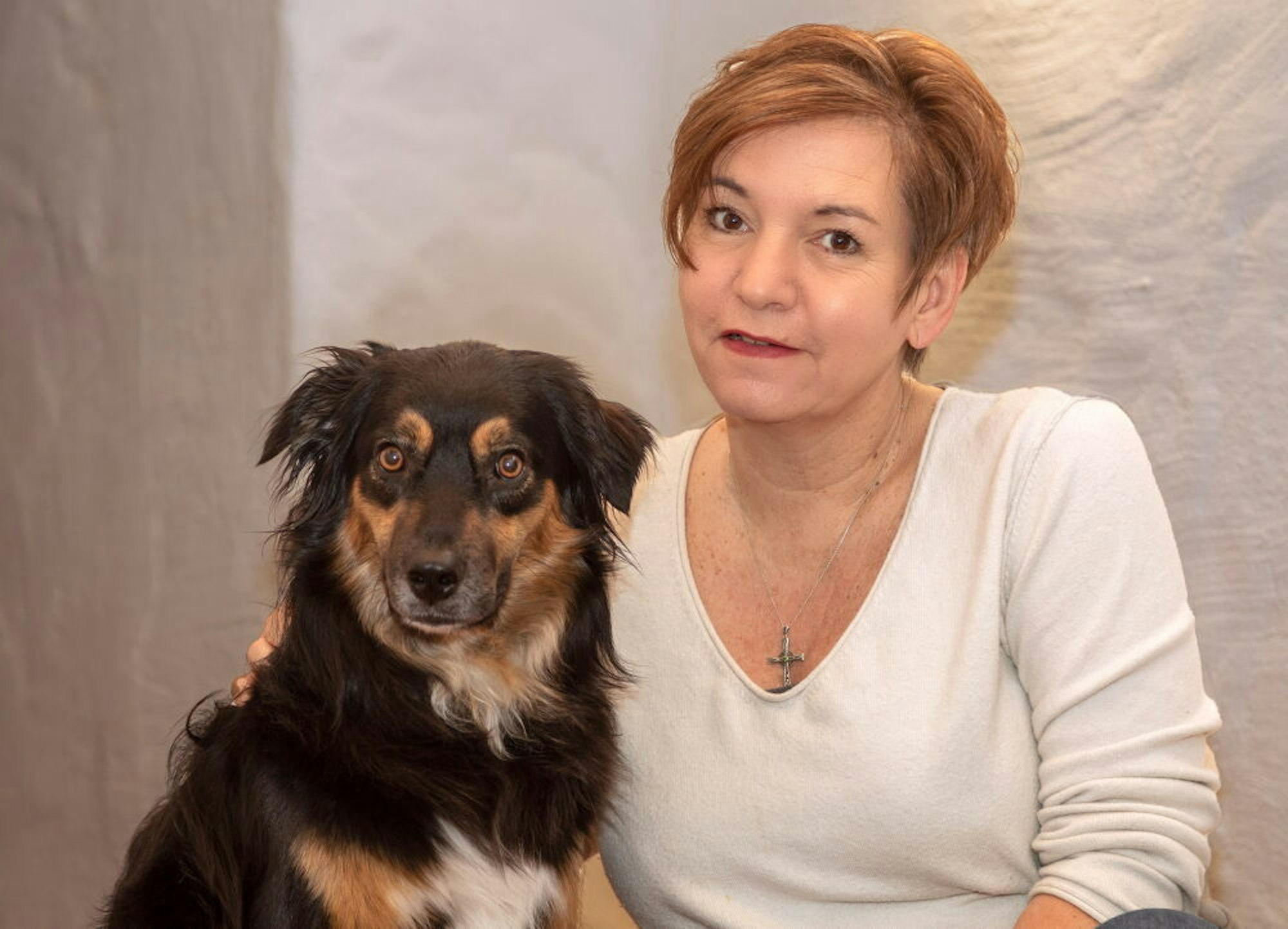 Die Tiertrainerin Regina Hauenstein mit ihrem Australian Shepherd Ally.