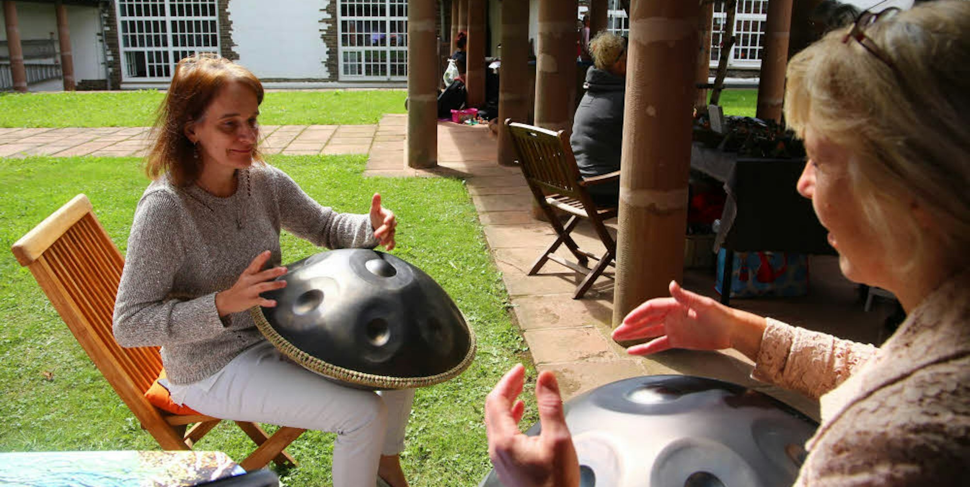Das Spiel auf der Handpan, die wie eine umgedrehte Steeldrum aussieht, konnten die Besucher bei Nicole Lehnhoff (l.) ausprobieren.