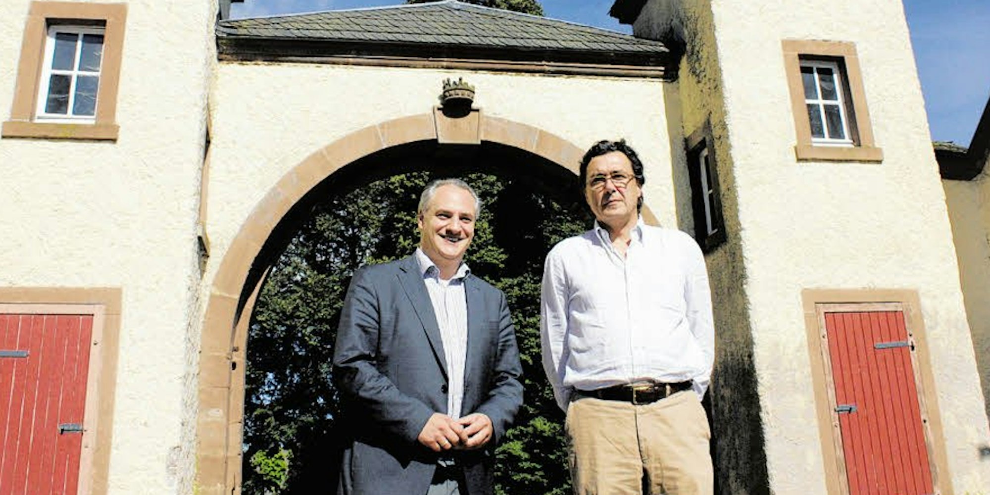 Emmanuel Graf Beissel von Gymnich (rechts) und Julien Uhlig erläuterten auf Schloss Schmidtheim ihre Pläne mit der Firma Entrade, die sich kürzlich von der Börse zurückgezogen hat.