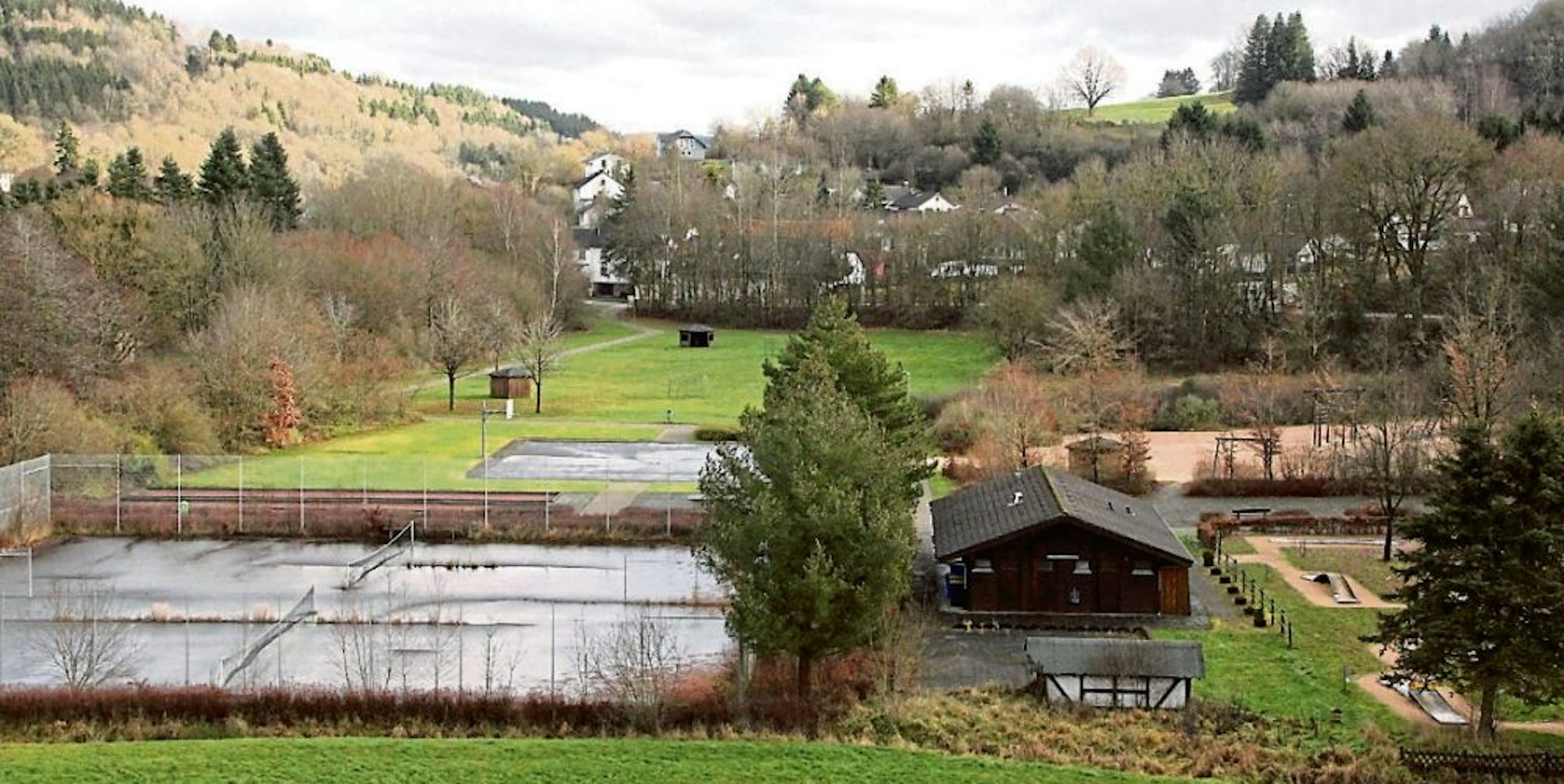 Die Freizeitanlage am Kronenburger See macht einen vernachlässigten Eindruck (Bild vom Dezember 2019). Hier soll „Eifel Glamping“ entstehen.