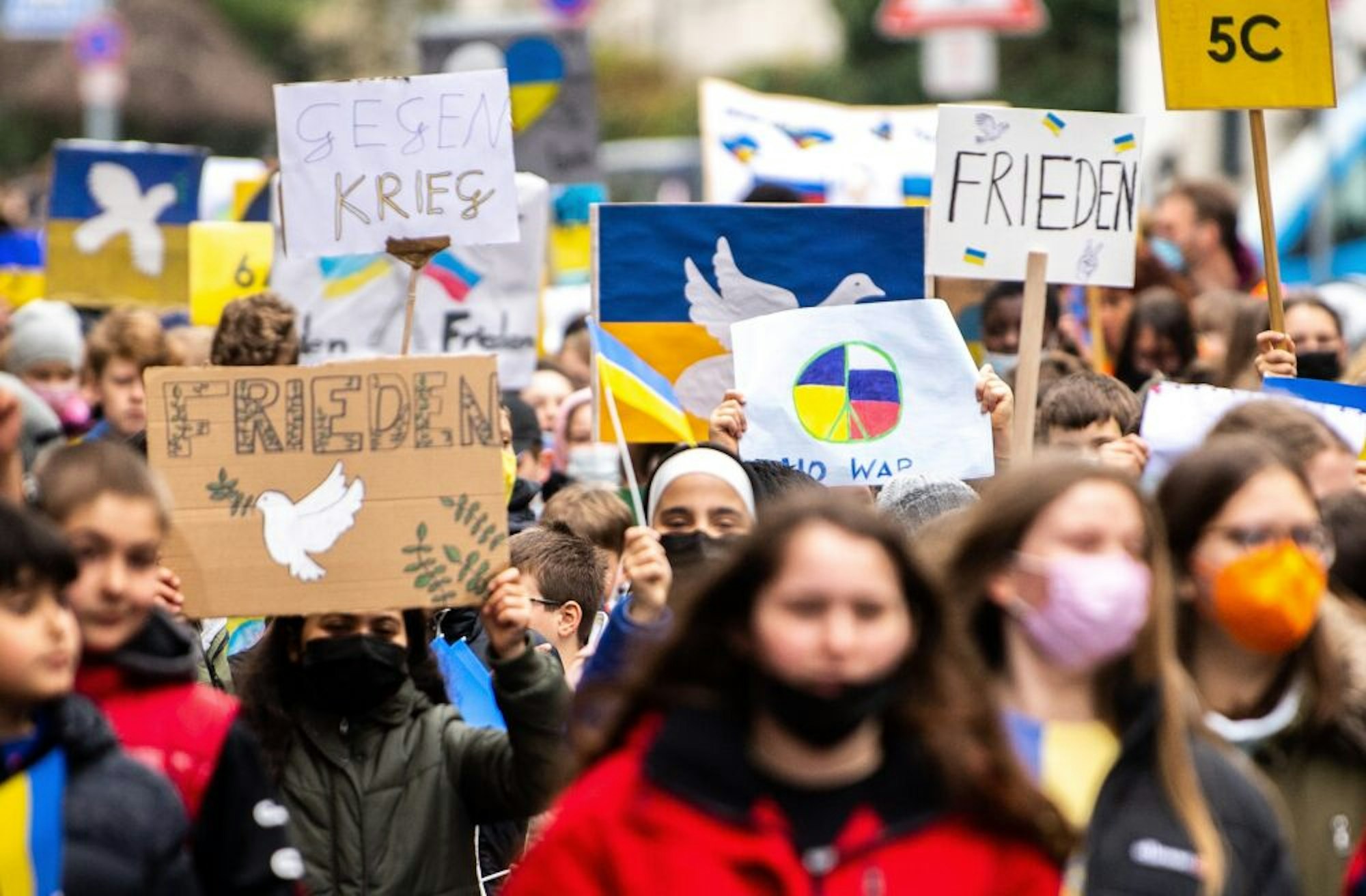 Euskirchen – Es war eine musikalische Playlist, die sich Wladimir Putin so wohl nicht zusammenstellen würde: Wind of Change von den Scorpions, Freiheit von Marius Müller-Westernhagen, One Love von Bob Marley und Imagine von John Lennon. Songs, die den etwa 3000 Schülerinnen und Schülern im Euskirchener Erftstadion aus der Seele sprachen.
