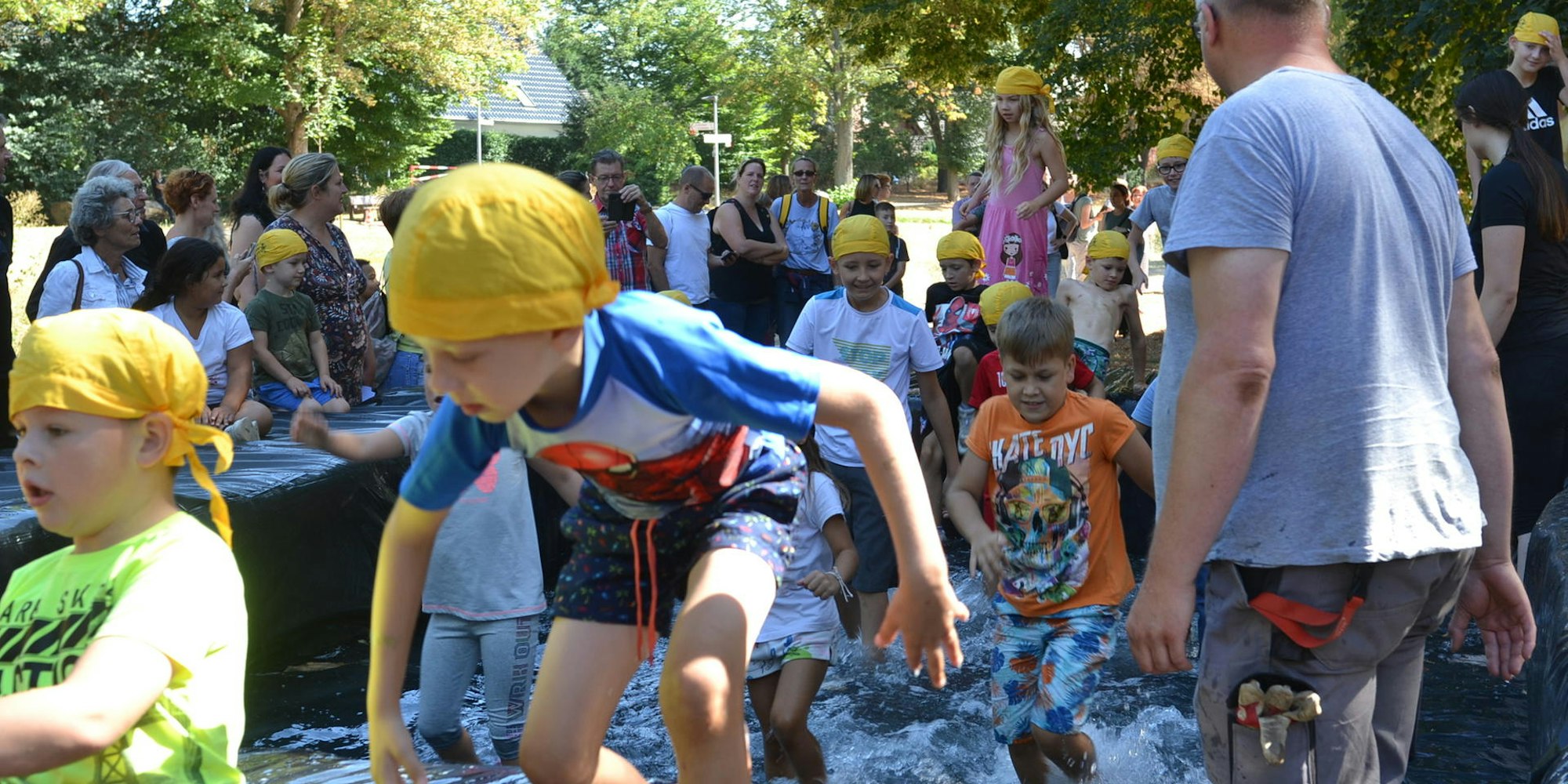 Doch auch abseits der Rennstrecke war für Unterhaltung gesorgt, um nach der Renaturierung der Erft den neuen, natürlichen Verlauf gebührend zu feiern. „Für mich vom Fachbereich Grünflächen und auch für das gesamte Team sollte klar das Thema Natur im Mittelpunkt stehen“, betonte Veranstalter Olaf Spekkers: „Es ist wichtig, Kinder schon früh für Umweltschutz und Nachhaltigkeit zu sensibilisieren, daher bieten wir neben zahlreichen Infoständen auch Mitmachaktionen, bei denen die Kinder selbst aktiv werden können.“