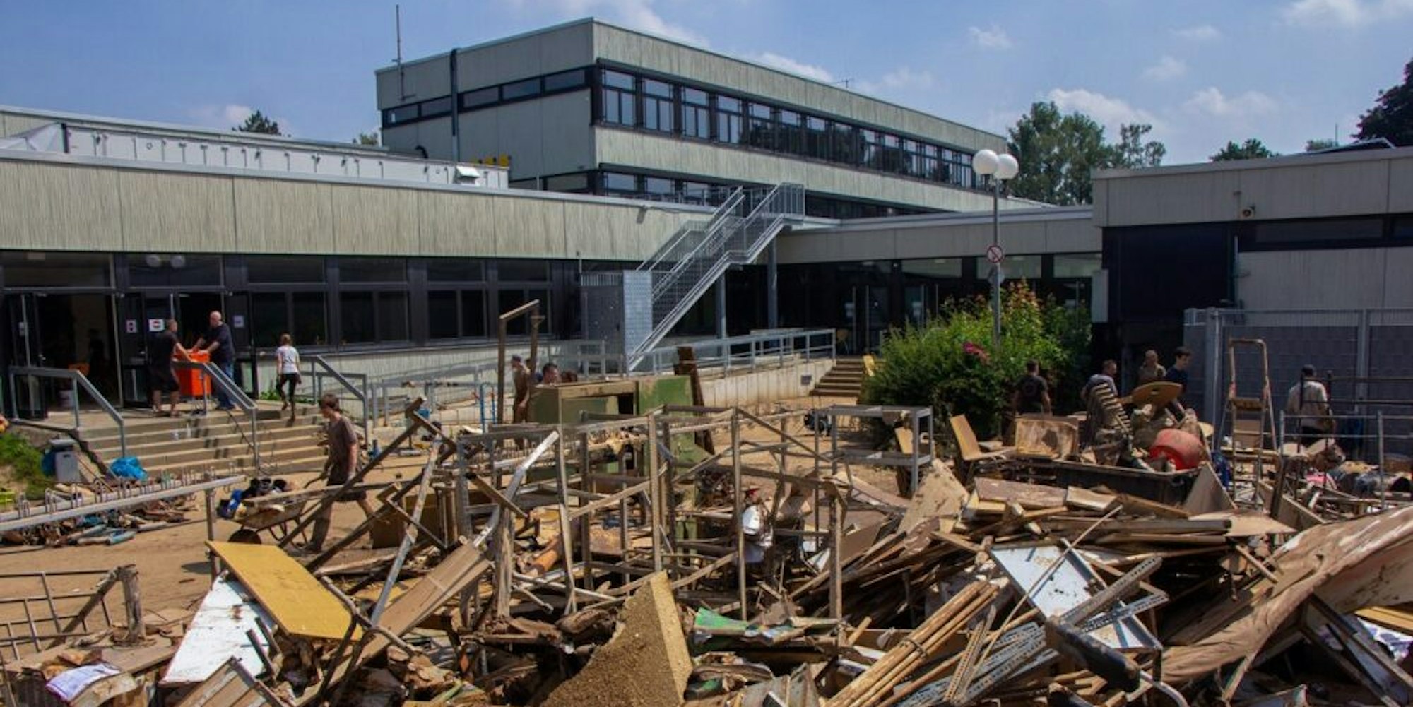 Sowohl in Kall als auch in Euskirchen seien die Kellerräume und das Erdgeschoss bis zu 40 Zentimeter überflutet worden, so Andres: „Dank der vielen Helfer sind die Aufräumarbeiten zum Großteil abgeschlossen.“ Die Hans-Verbeek-Schule habe es ordentlich erwischt. Dort wird es zunächst ein Wechselmodell in Kooperation mit der Max-Ernst-Schule geben. Die rund 140 Schüler werden alle zwei Tage beschult – sowohl in einigen wenigen Räumen der Hans-Verbeek-Schule wie auch in der Max-Ernst-Schule. Das Modell gilt laut Kreis ab dem 23. August zunächst für 14 Tage.