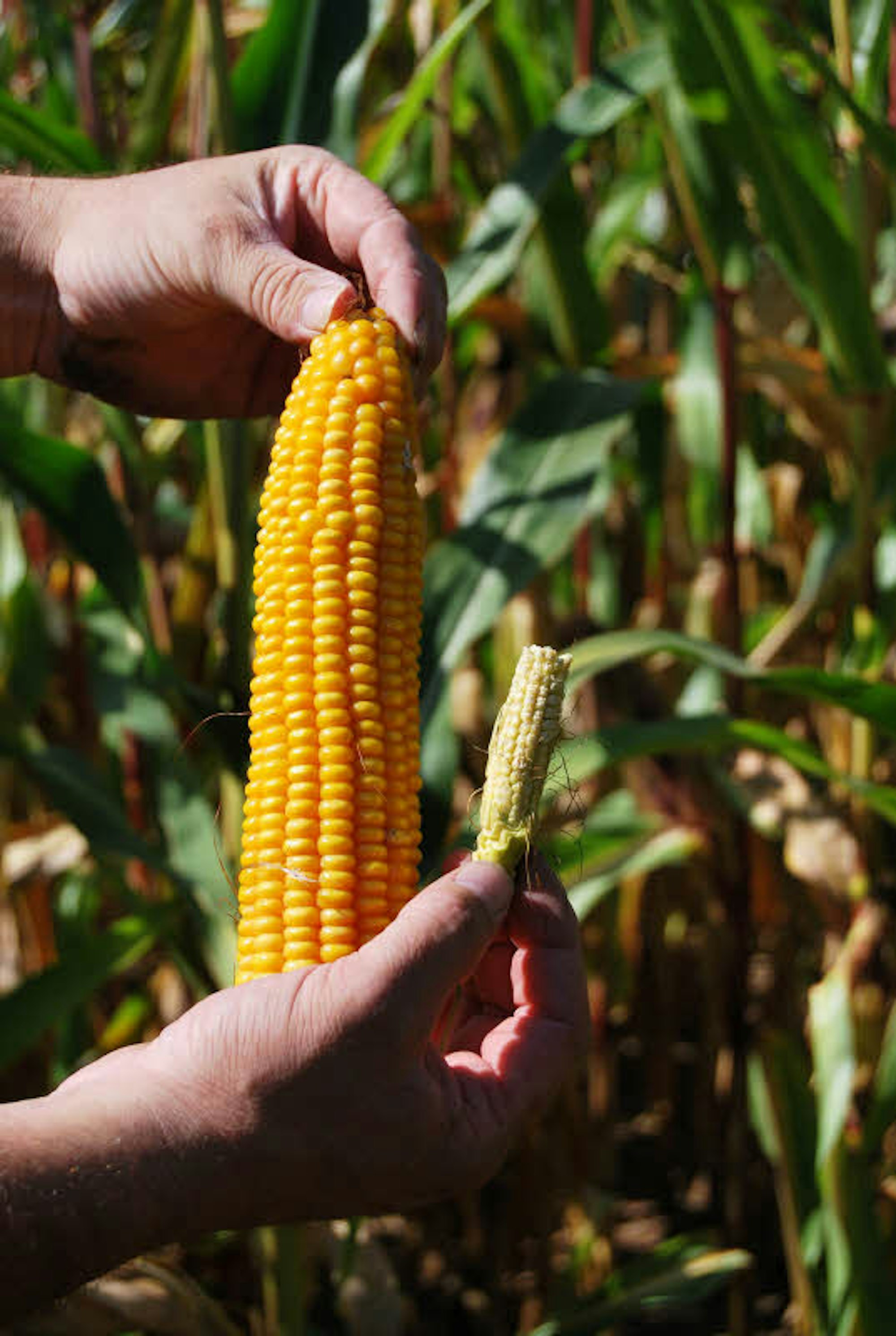 Allerdings sind – wegen der uneinheitlichen Bodenbeschaffenheit – die Unterschiede selbst auf dieser Parzelle eklatant: An einer Seite des Stücks sind goldgelbe Kolben in beachtlicher Größe gewachsen, am anderen Ende dagegen, nur gut 100 Meter weiter, nur winzig kleine Exemplare ohne ein einziges Korn.