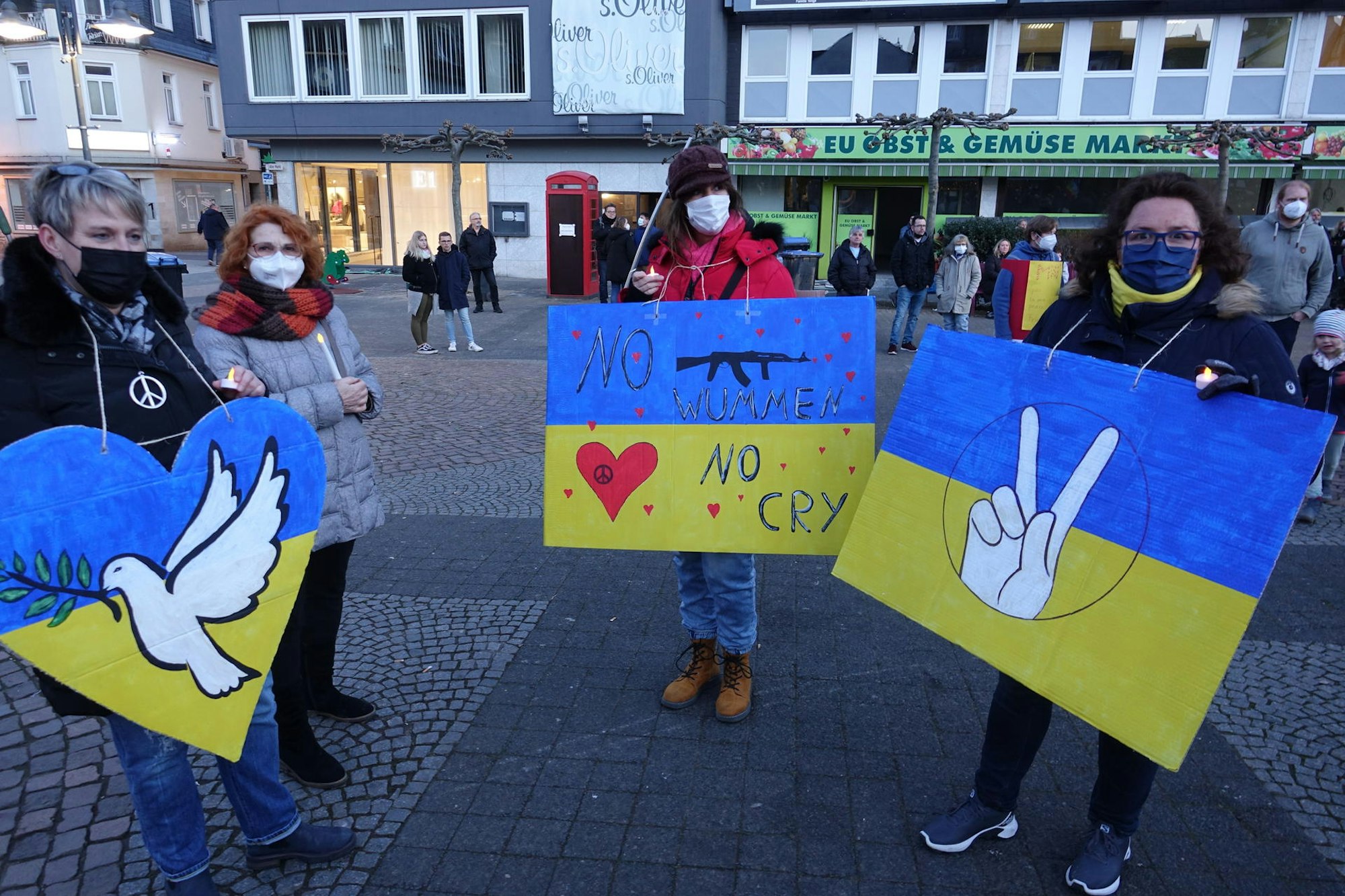 Gemeinsam mit den rund 150 anderen Teilnehmern der Kundgebung lautete ihr Appell an den russischen Präsidenten Putin, den Wahnsinn zu stoppen und den Krieg zu beenden.