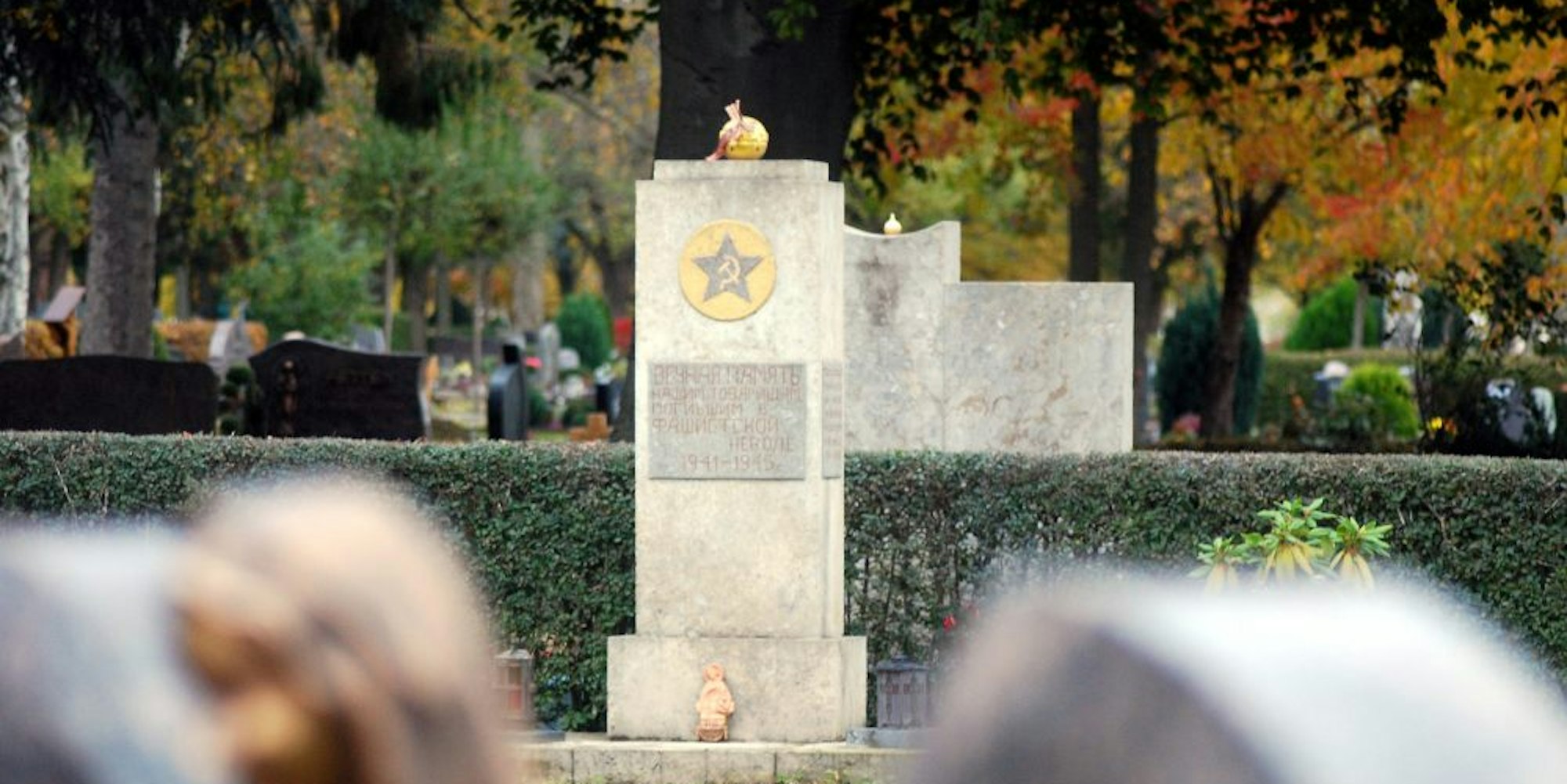 Die Stele der Grabstätte für Kriegsgefangene und Zwangsarbeiter aus der UdSSR schmückt ein Sowjetstern.