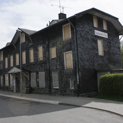 Auf der Wilhelmstraße weist Baumerich auf eines der Drei-Fenster-Häuser hin. Diese schmale Bauweise war typisch für das Rheinland. Denn zu Beginn des 20. Jahrhunderts habe es eine Steuer bezüglich der Breite der Häuser gegeben, so der Experte. Wer sich aber gut mit seinem Nachbarn verstand, sprach sich in der Gestaltung der Fassade mit diesem ab. So wirkten zwei schmale Häuser auf den ersten Blick wie ein großes breites, erklärt der Experte lächelnd und führt die Gruppe von Haus zu Haus.