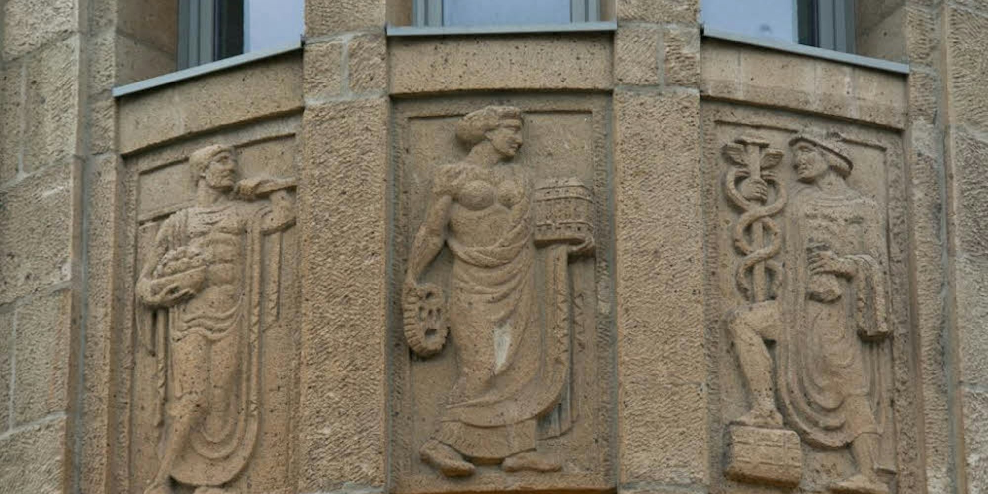 Stuck vom Feinsten: Gottheiten am ehemaligen Kaufhaus Eschweiler (v.l.).