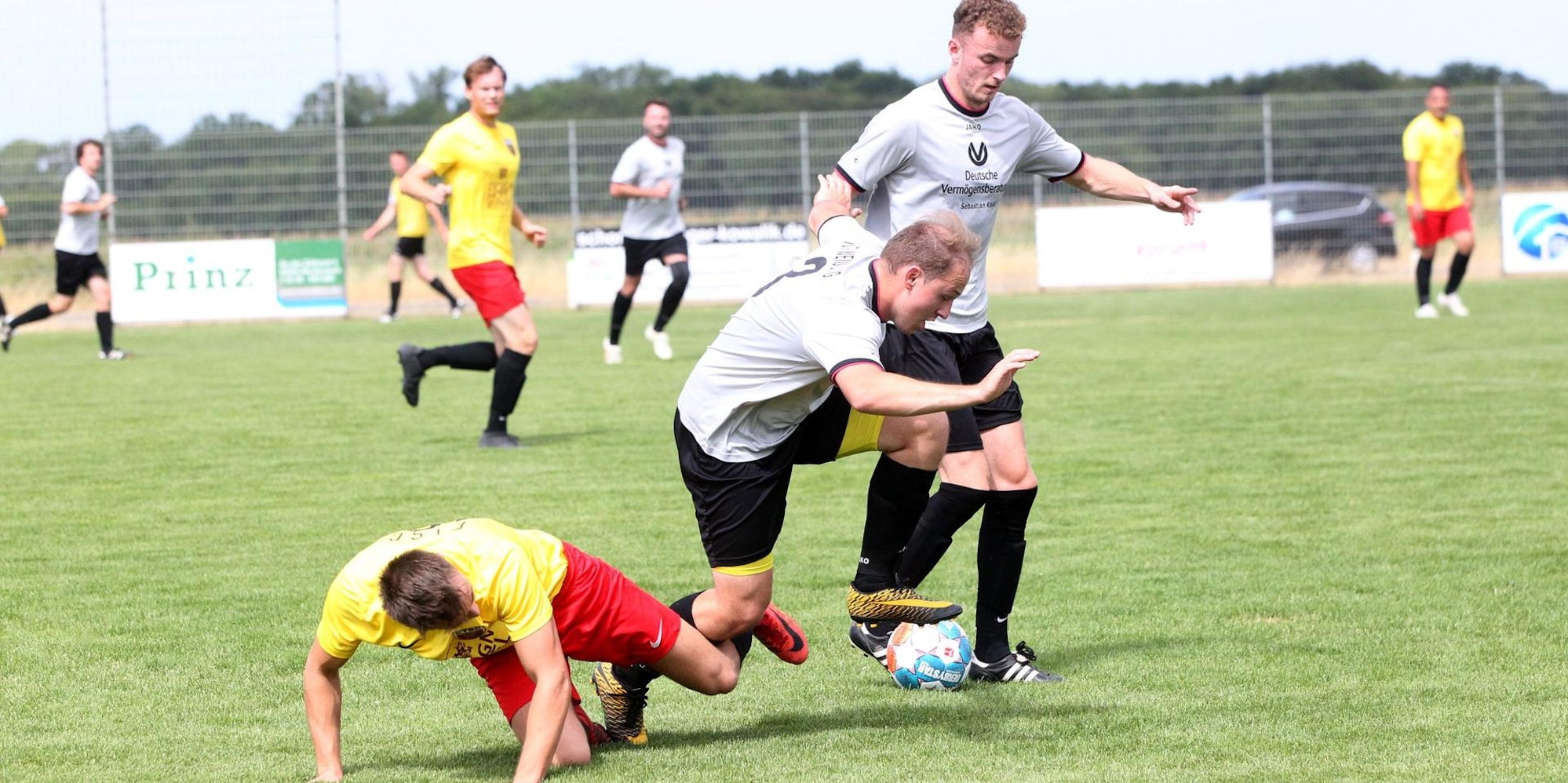 Elfmeter? Dario Morinello (am Boden) wollte einen, Aaron Dubbelfeld sah das anders.