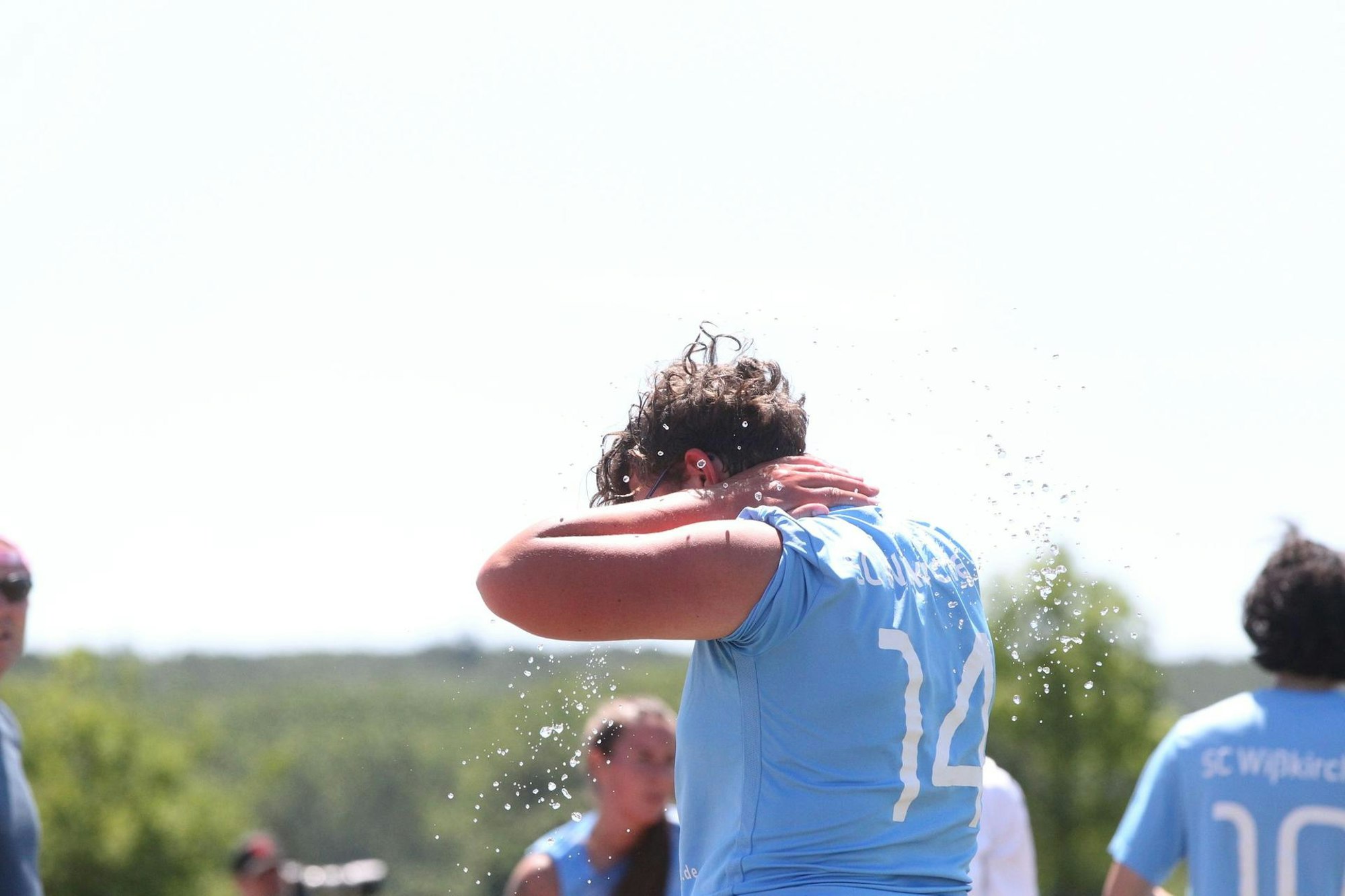 Schiedsrichter Nicola Muto hatte ein Nachsehen mit den 22 Spielerinnen. Bei den sommerlichen Temperaturen auf dem Kunstrasen wurden mehrere Trinkpausen ermöglicht, die Wißkirchens Coach Alexander Koch immer wieder nutzte, um mit Hilfe seiner Taktik-Tafel neue Instruktionen zu geben. „Wir pfeifen heute personell aus dem letzten Loch. Wir haben niemanden auf der Reservebank sitzen“, sagte er noch vor dem Anpfiff. Es kam wie es kommen musste: Svenja Thoors fiel früh verletzungsbedingt aus.