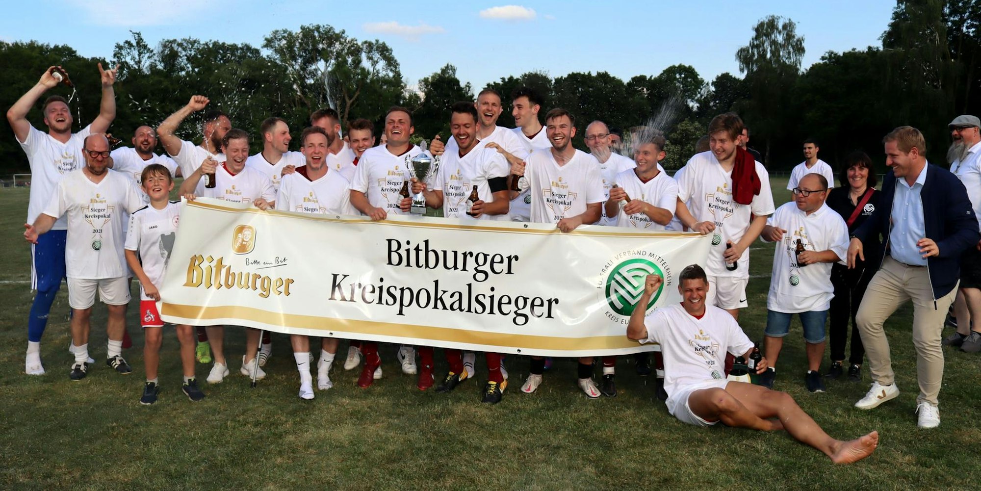 Der TuS Zülpich feiert des Gewinn des Kreispokals 2021/22.