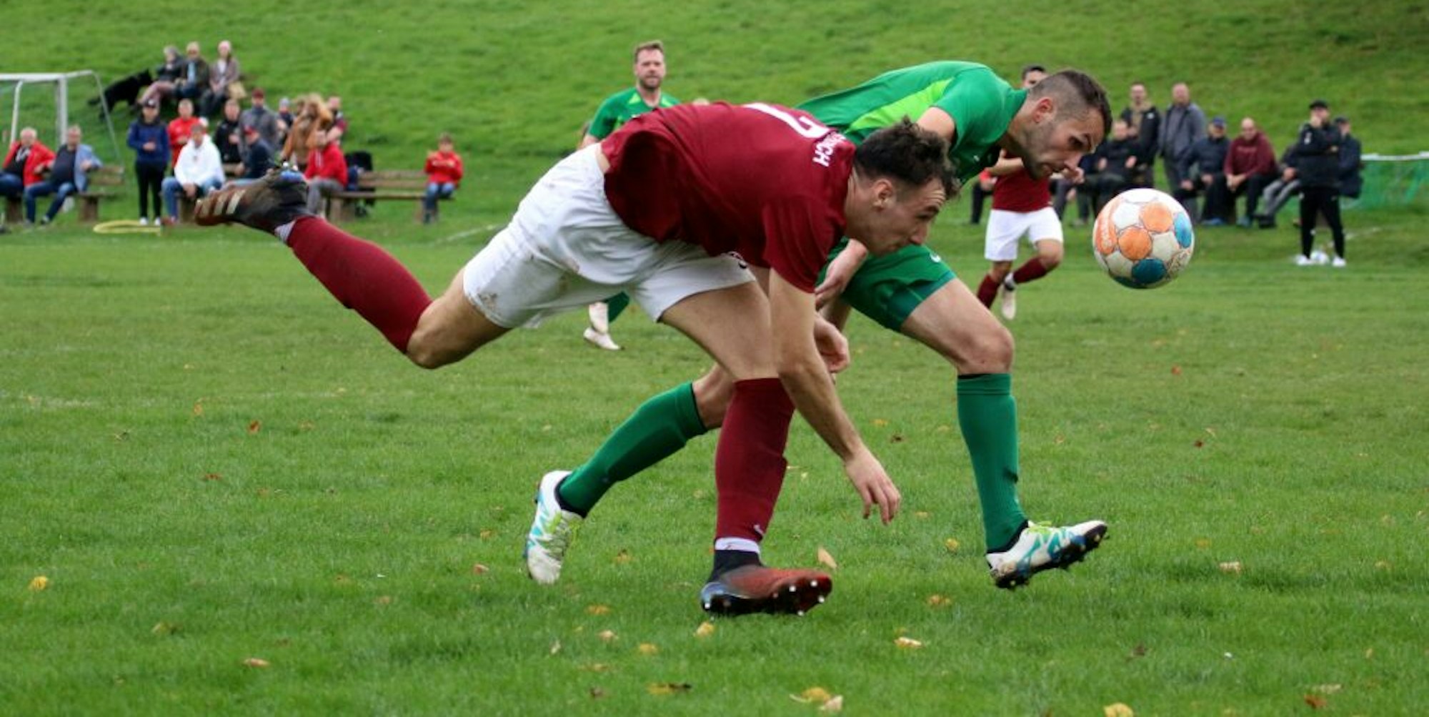 Auf Augenhöhe: Sötenichs Martin Schmitz (hinten) und Luca Ohrem liefern sich einen ungewöhnlichen Zweikampf.