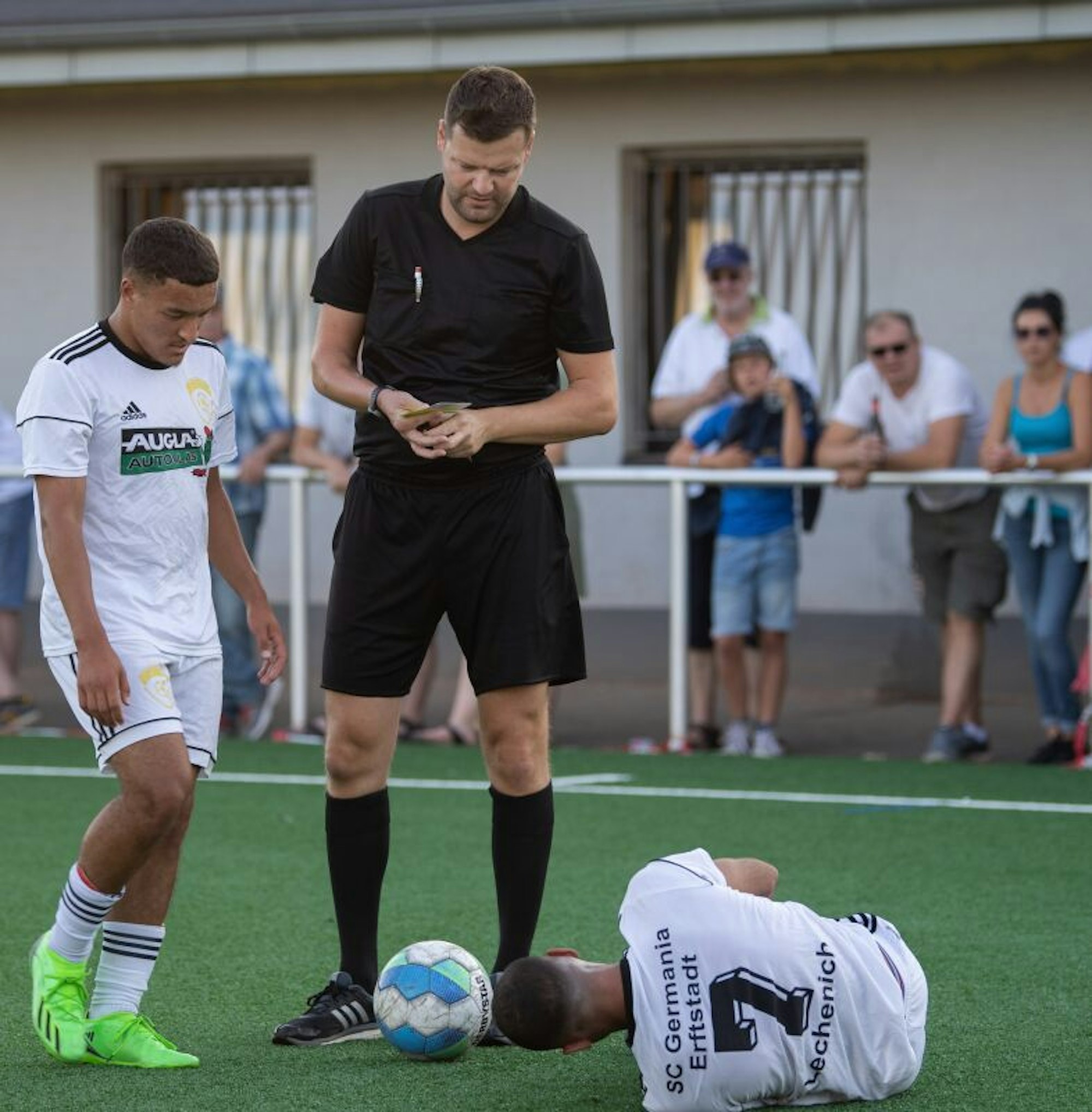 Dienstagabend: Split. Mittwochmorgen: Flughafen. Mittwochabend: Pokalhalbfinale als Schiedsrichterassistent. Jörg Piana gab alles, um beim Duell zwischen Weilerswist und Erftstadt-Lechenich dabei sein zu können. Und Piana machte wieder eine gute Figur an der Seitenlinie – wie das gesamte Gespann mit Schiedsrichter Michael Erken und dem zweiten Assistent Justus Hütten.