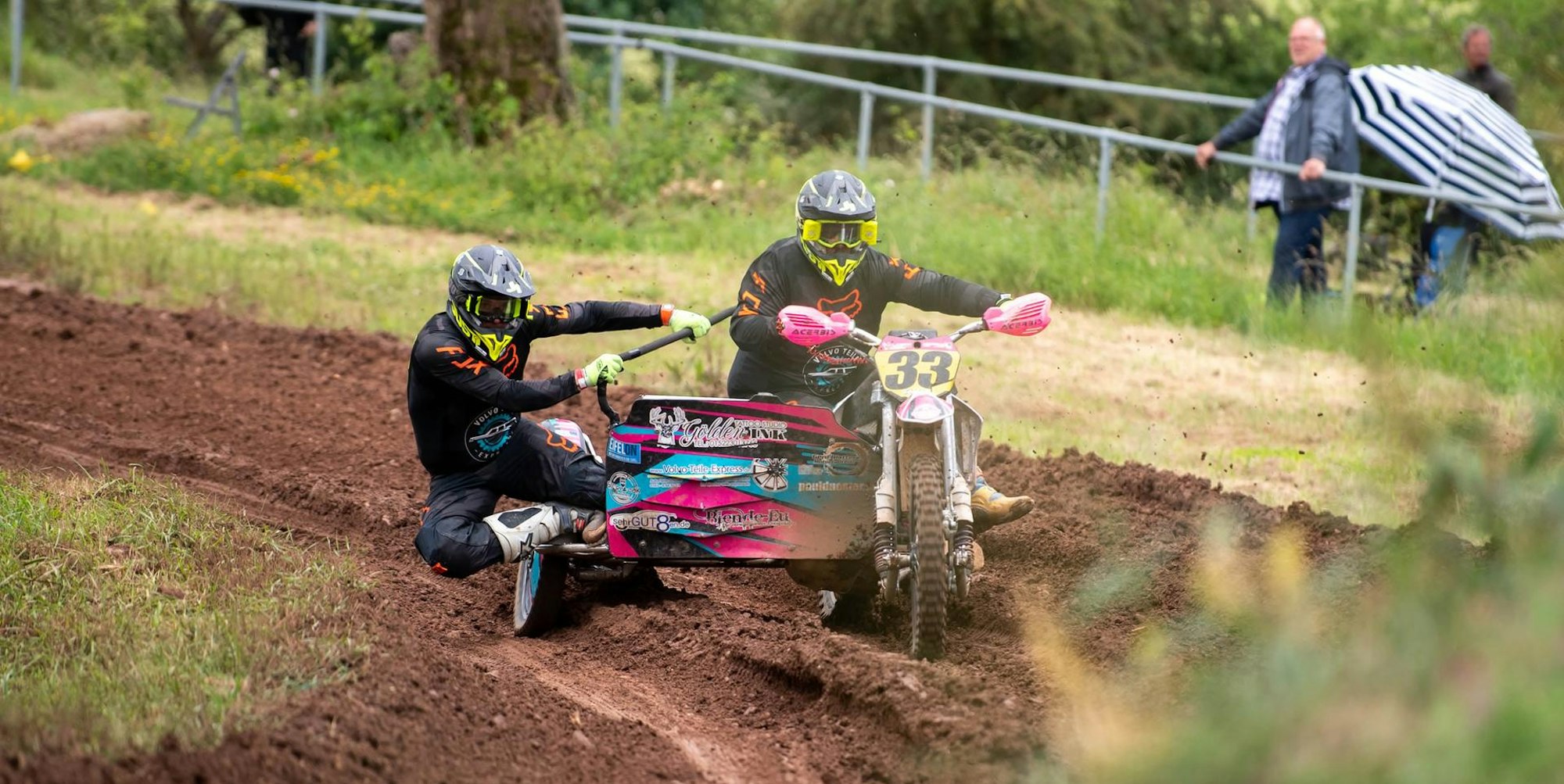 „Das war ein richtiger Scheißtag. Der Frust sitzt tief“, sagte Daniel Gölden. Der Lokalmatador kam am Pfingstmontag in der Seitenwagen-Klasse mit seinem Beifahrer Tobias Moos richtig gut ins Rennen. Nach wenigen Kurven lag er im ersten von drei Rennen auf der dritten Position. Doch dann passierte es: Ein Stein schleuderte gegen den Notausschalter. Dadurch ging die Maschine aus und musste neu gestartet werden. „Als sie dann ansprang, hörte es sich komisch an und wir haben Runde für Runde Leistung verloren“, so Gölden, der das Rennen nicht bis zum Ende absolvierte.