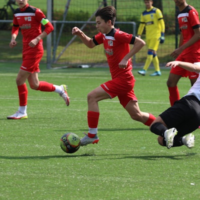 Gabriel Amisso von der JSG Erft 01 versucht sein Glück mit einem Fallrückzieher.