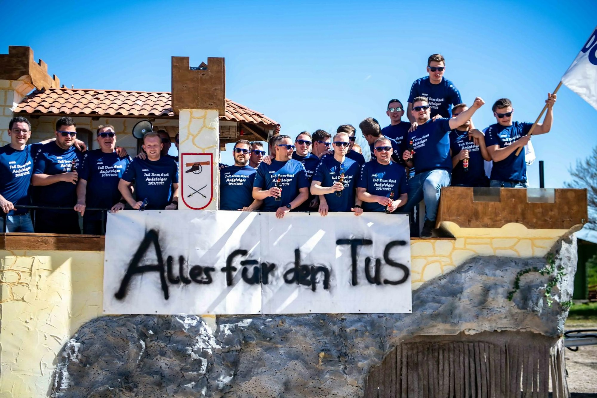 Mit Erfolg: Seit der Saison 2019/20 wird in Dom-Esch wieder Fußball gespielt. „Das ist aus einer Bierlaune heraus entstanden“, erinnert sich Flatten. Mittlerweile ist das Team eine kleine Familie, bestehend aus den oft zitierten elf – im Fall des TuS sogar deutlich mehr – Freunden. „Das Projekt ist mittlerweile eine Art Selbstläufer“, freut sich der Dom-Escher.