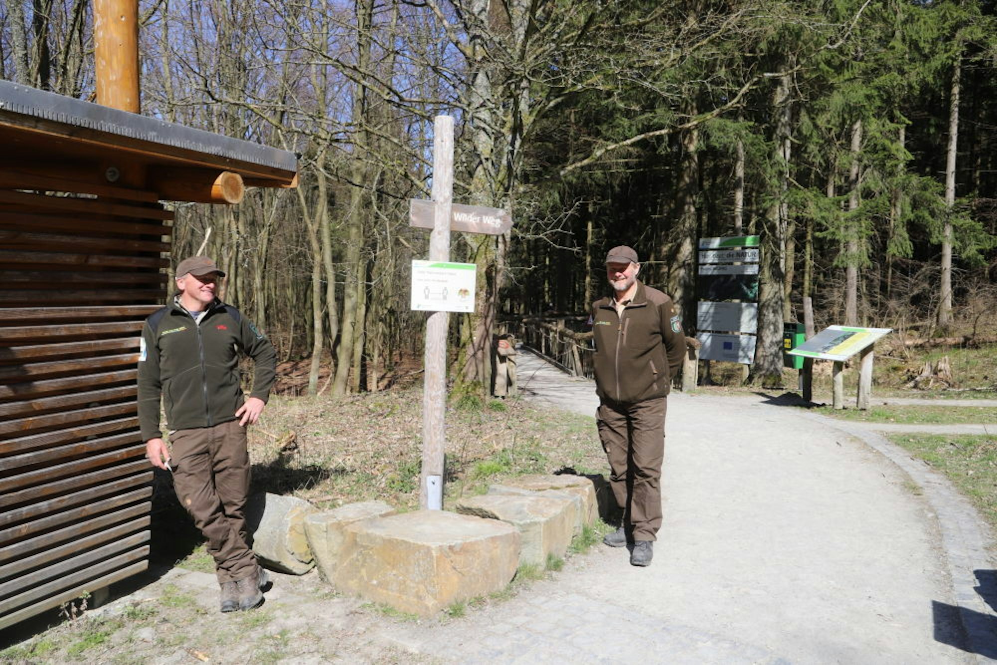 Einen ruhigen Job hatten die Nationalparkranger Udo Prinz (l.) und Rolf Jakobs am Eingang zum Wilden Weg nur am Samstag.