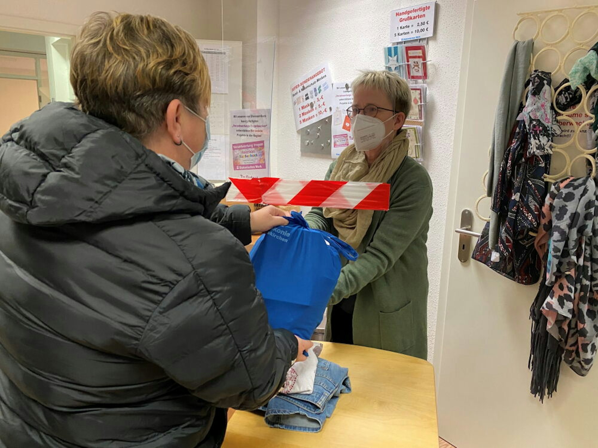 „Seid ihr noch gerne hier?“, ruft Geli Winkler ihrem Team zwischendurch immer wieder zu. Eine Art Running Gag, den die Frauen, die an der einen Ecke neue Ware auffüllen, an der anderen Kleidung in die Regale sortieren, stets mit fröhlichem „Ja!“ begegnen. Geli Winkler verschwindet kurz im Abstellraum hinter der Kasse. „Sieht aus wie totales Chaos, hat aber System“, sagt sie augenzwinkernd und deutet auf die vielen blauen Stofftaschen, die dort stehen – eine Spezialität des Kleiderladens, die Jahr für Jahr begeisterte Kundschaft lockt. „Das sind unsere Wundertaschen, die gibt es immer in der Vorweihnachtszeit“, erklärt Winkler. Neun Euro für Erwachsene und sechs für Kinder kosten die Taschen, die gefüllt sind mit allerlei Überraschungen, Gutscheinen und Losen.