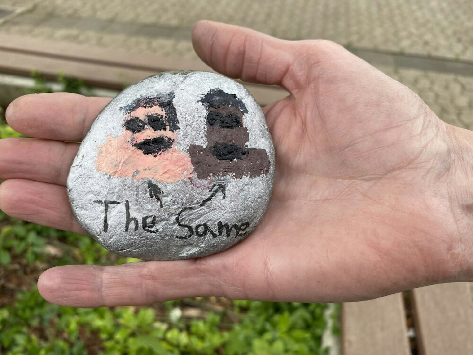 Rund 400 Steine sind bereits gesammelt worden, alle mit unterschiedlicher Gestaltung und Botschaft: Sowohl regenbogenfarbene Herzen, allerlei Friedenssymbole, Mandalas und Blumenranken als auch bunte Weltkugeln, sich reichenden Hände und lachende Gesichter finden sich darauf. Auf manchen der Steine stehen ganze Gedichte, andere sind mit passenden Schlagwörtern verziert oder mit mal ernsten, mal witzigen Sprüchen wie „Mein IQ ist zu hoch für Rassismus“ oder „Liebe über Hass“.